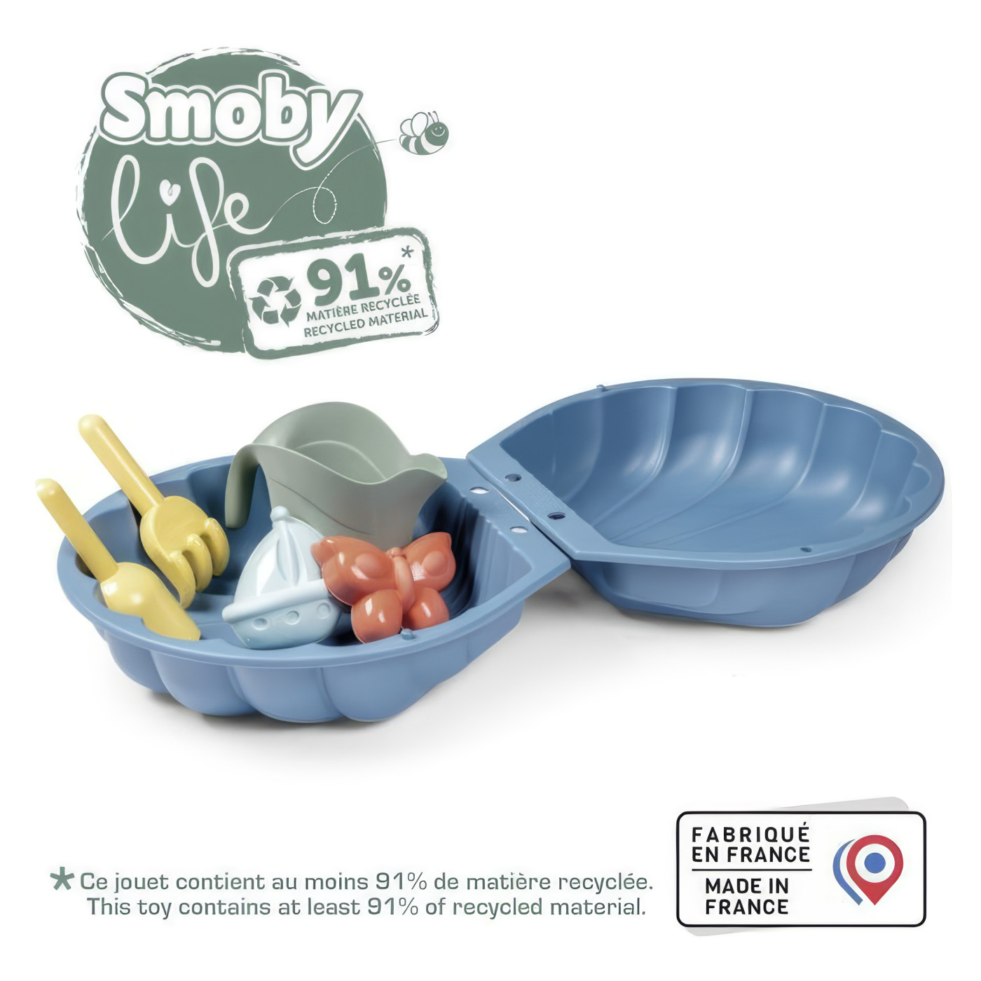 Smoby mini školjka osmišljena je kao praktičan dvodijelni pješčanik za igru s pijeskom, vodom ili lopticama. Kompaktan format čini ga prikladnim za korištenje u dvorištu, na terasi, balkonu ili u unutarnjem prostoru kada se želi jednostavno pripremiti kutak za igru.