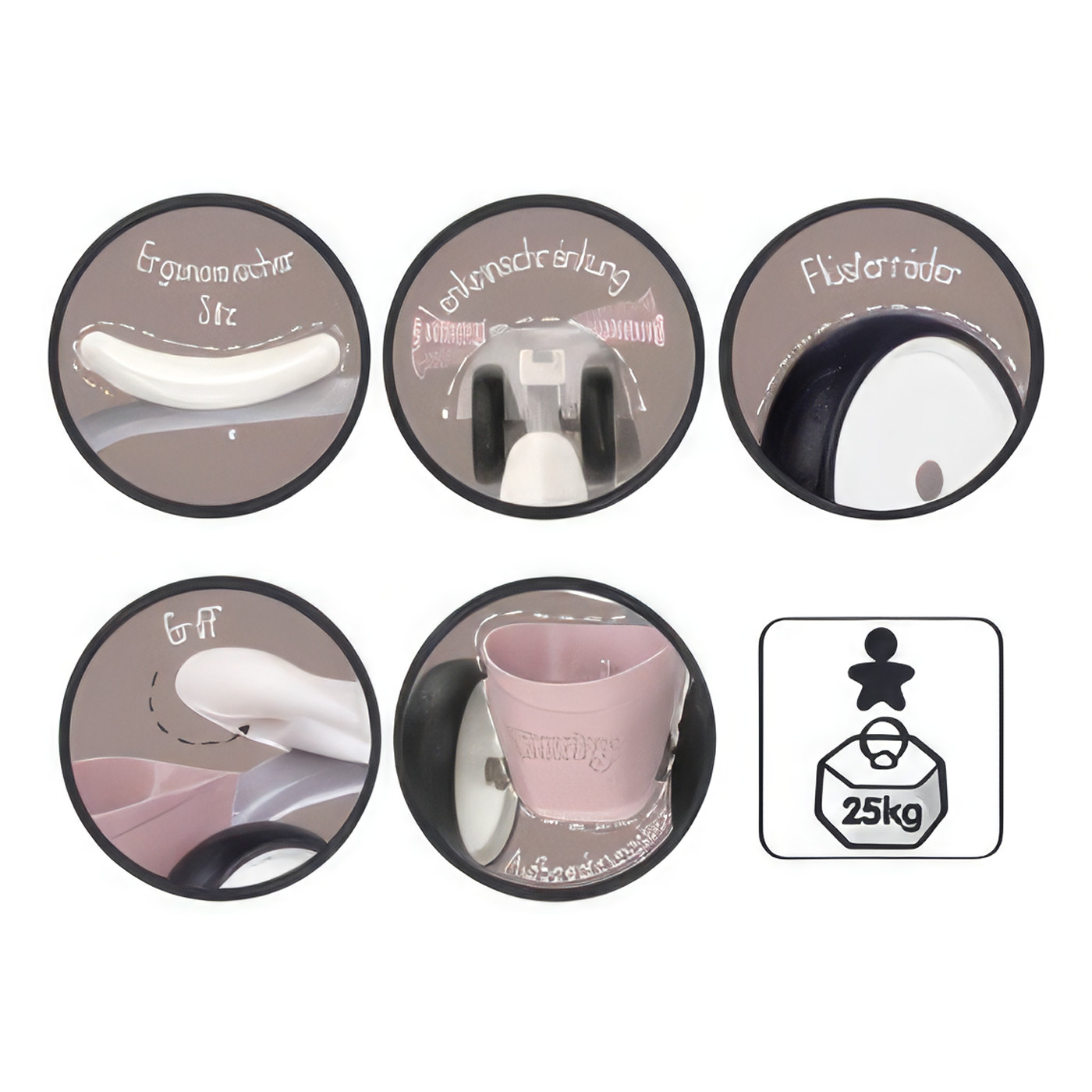 Ovaj model zrači nježnošću i zaigranošću, što ga čini izvrsnim darom za svaku malu pustolovku. Ergonomski oblik sjedala i sigurni rubovi omogućuju udobnu i sigurnu igru. Uz guralicu, svaki dan postaje nova vožnja i prilika za napredak – bilo kod kuće ili na otvorenom.