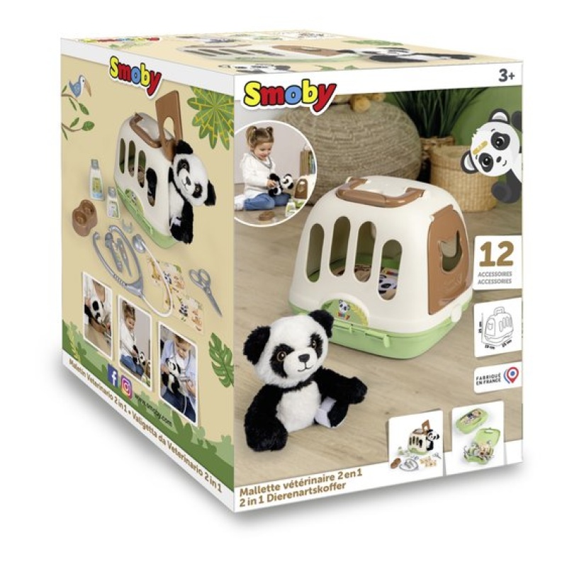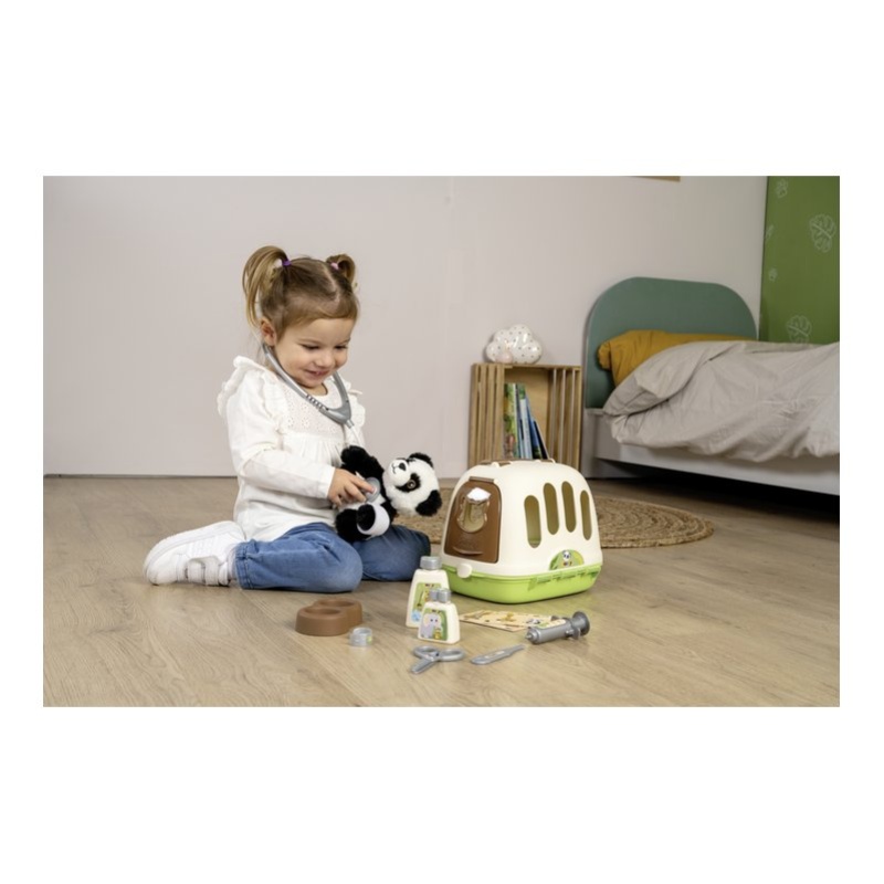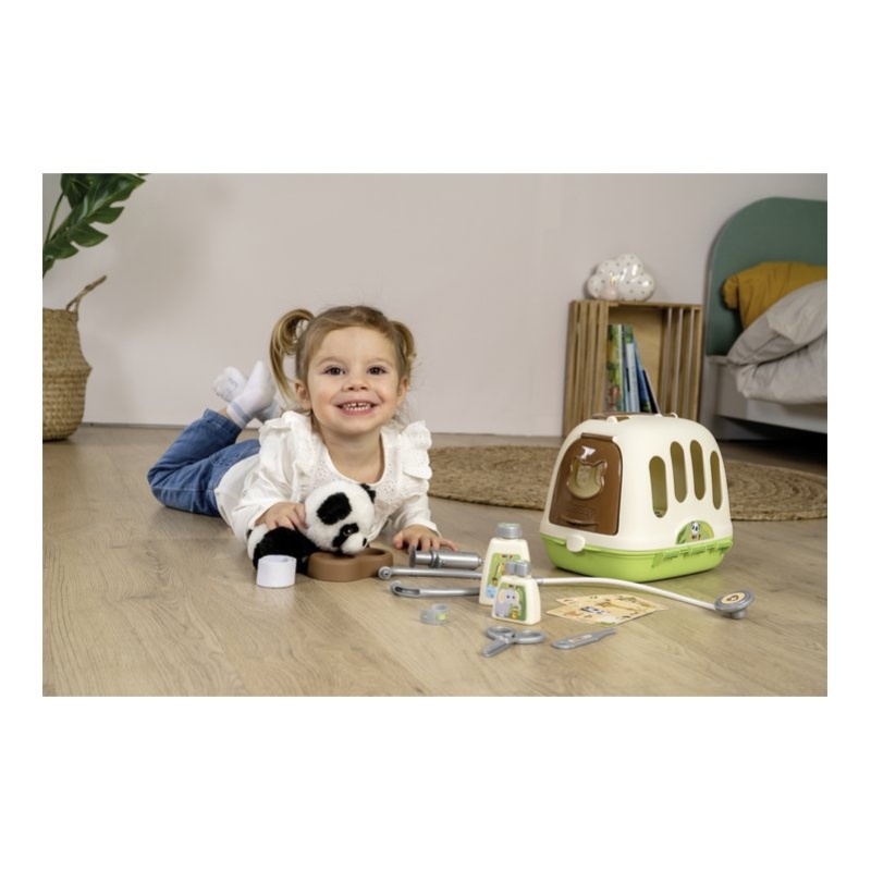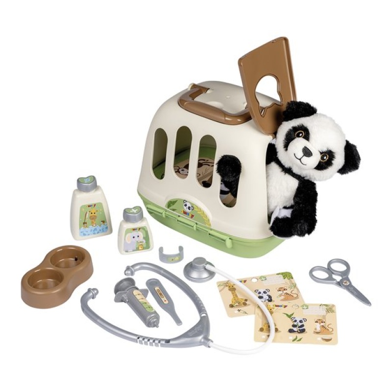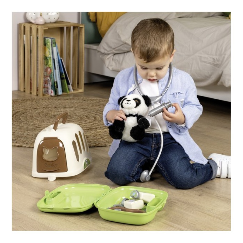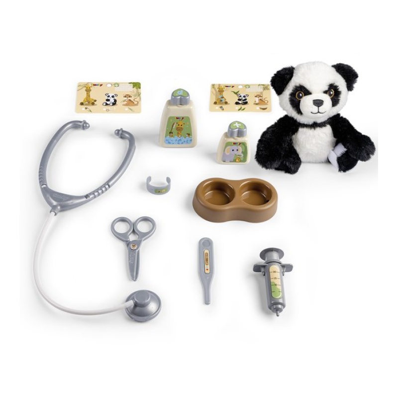 Ovaj 2-u-1 veterinarski set dolazi s čak 12 dodataka, uključujući stethoscope, termometar i čak malog pandu koji čeka da ga izliječite. Svaki element seta pažljivo je osmišljen kako bi se djeca mogla potpuno uživjeti u ulogu životinjskog doktora. Kombinacija boja i pribora nudi beskonačne mogućnosti igre, a vaše dijete će usvojiti ne samo vještine brige i pažnje, već i razviti empatiju prema životinjama.