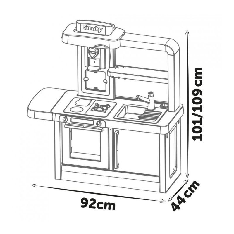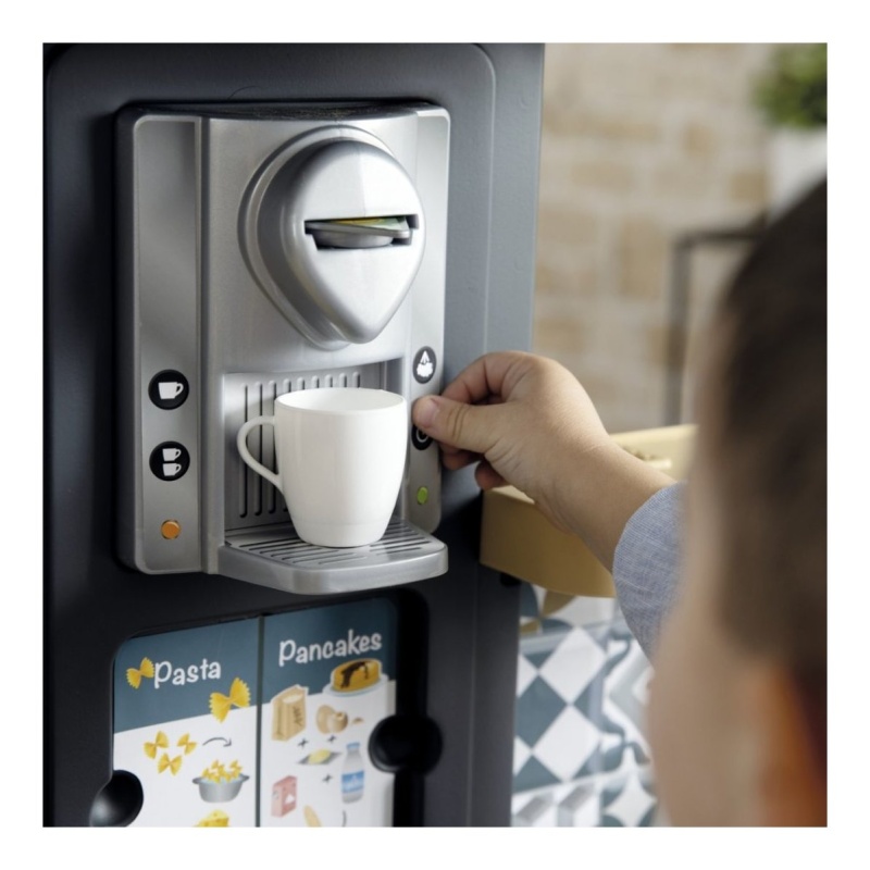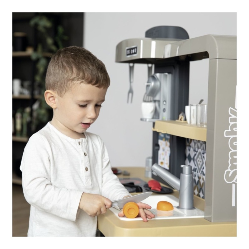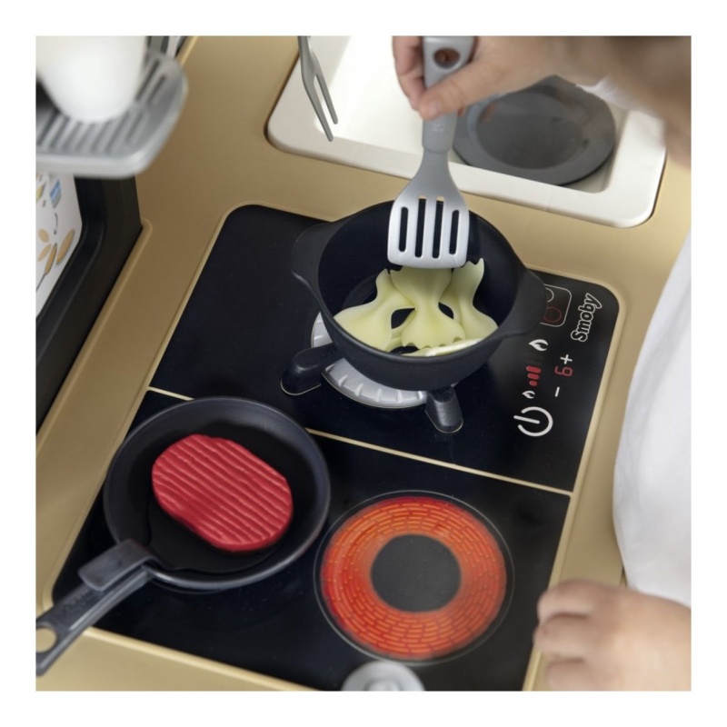 S podesivom visinom radne površine od 50 do 58 cm, ova kuhinja omogućuje vašem djetetu da istražuje i razvija svoje kulinarske vještine bez obzira na njegovu visinu. Uz dodatne značajke poput pećnice, hladnjaka, ploče za kuhanje sa zvučnim efektima i espresso aparata, svako dijete će se osjećati kao pravi mali chef u svom vlastitom restoranu.