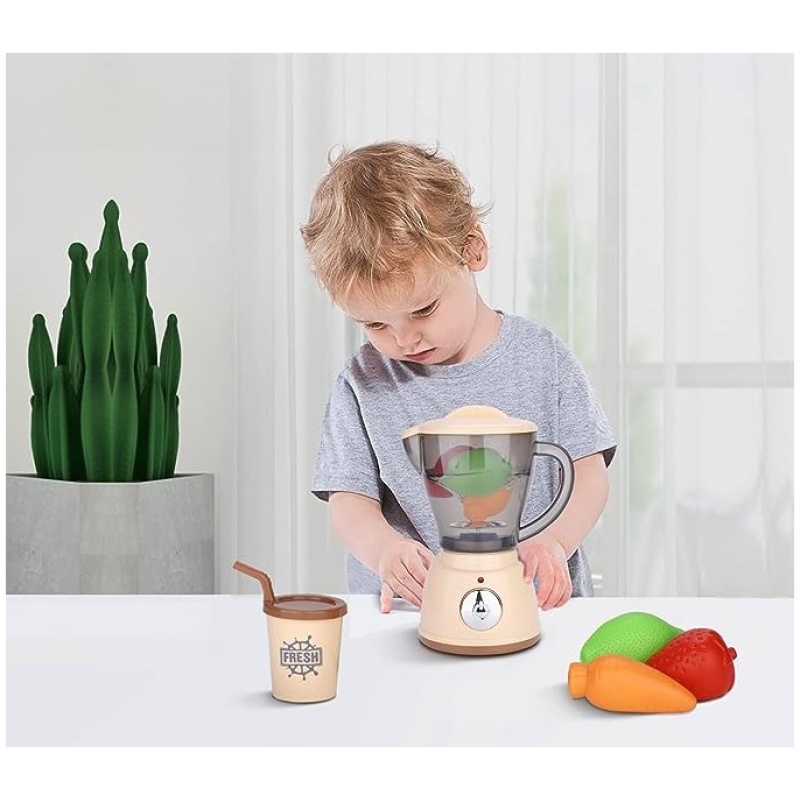 Djeci rano moramo usaditi osjećaj odgovornosti – a nema boljeg načina za to nego kroz igru! Kućanski poslovi su savršeni za poticanje samopouzdanja kod djece, a u isto vrijeme i prilika za učenje novih vještina. Vaši mališani najbolje će naučiti iz onoga što rade! Priuštite vašem djetetu ovaj sokovnik koji je izrađen od visokokvalitetnih materijala te je potpuno siguran za vaše dijete i gledajte kako razvija svoju maštu pripremajući sokove i smoothije! Ovaj set sadrži: 1 blender s poklopcem koji se može skinuti, 1 postolje s prekidačem za uključivanje/isključivanje i indikatorskim svjetlom uključujući funkciju miješanja i zvučni efekt – idealno za miješanje smoothieja sa 3 različite vrste voća voća te 1 šalica s odgovarajućim poklopcem uključujući slamku.