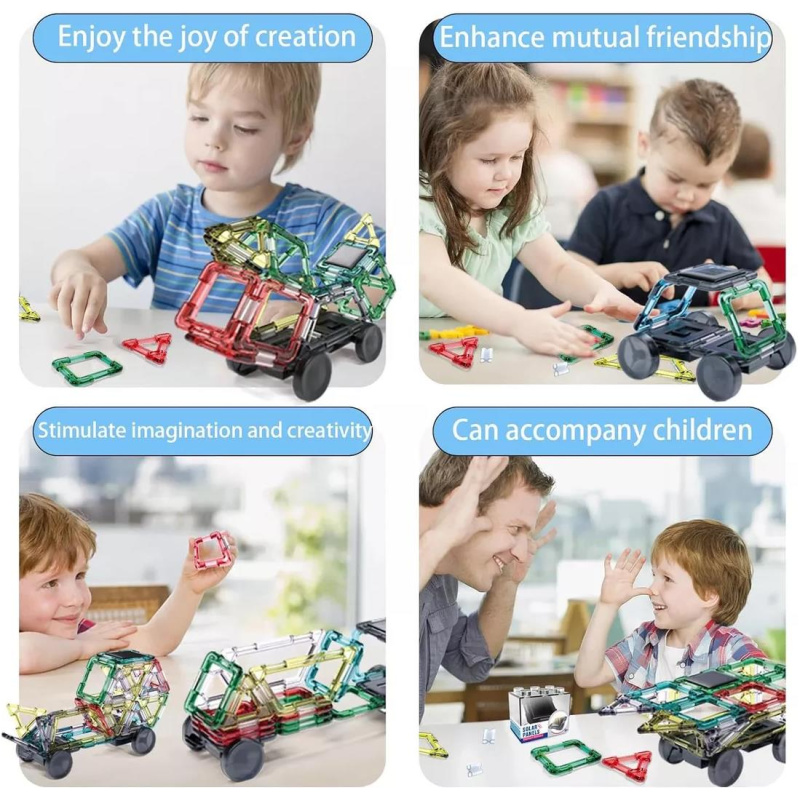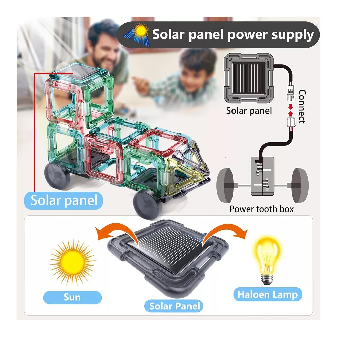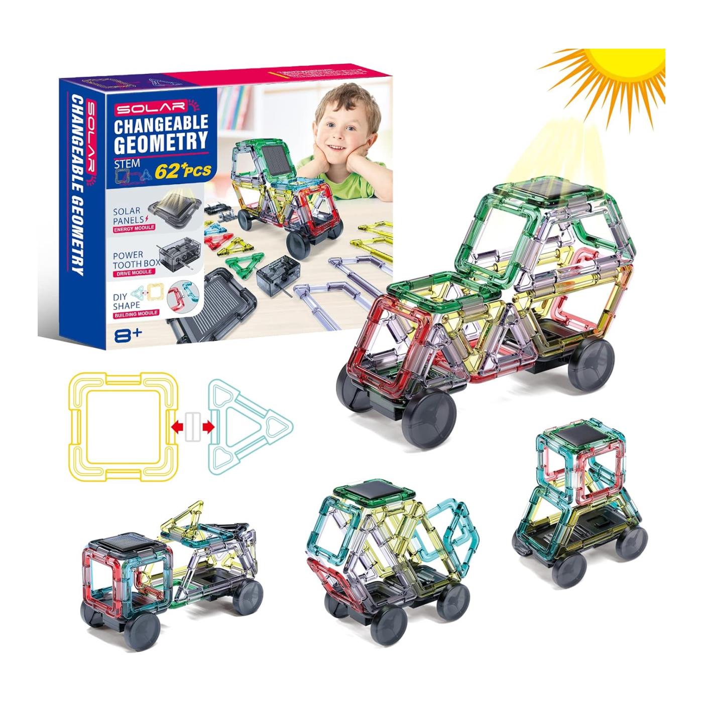Solarno geometrijsko auto s prozirnim blokovima razvija STEM vještine bez baterija i ekrana.