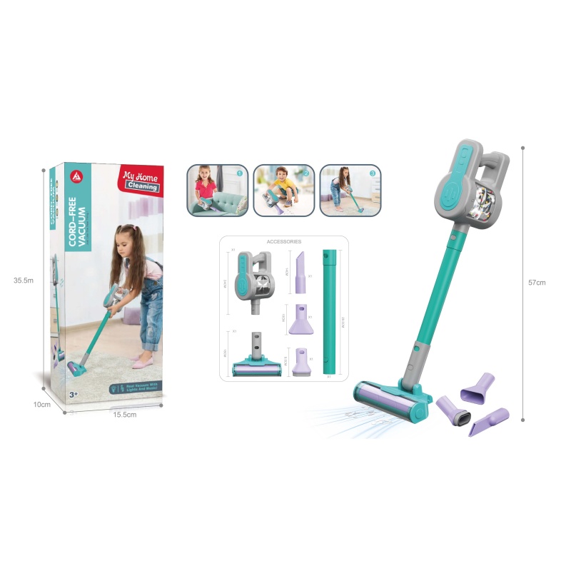 Ovaj realistični set električnog usisavača uključuje dodatne alate za čišćenje, omogućujući vašem djetetu da uči o važnosti održavanja čistoće, dok uživa u igri. S tri zamjenjive četke različitih oblika, vaš mali istraživač će razvijati fine motoričke vještine i samopouzdanje, a sve kroz igru koja oponaša stvarne zadatke u domaćinstvu.