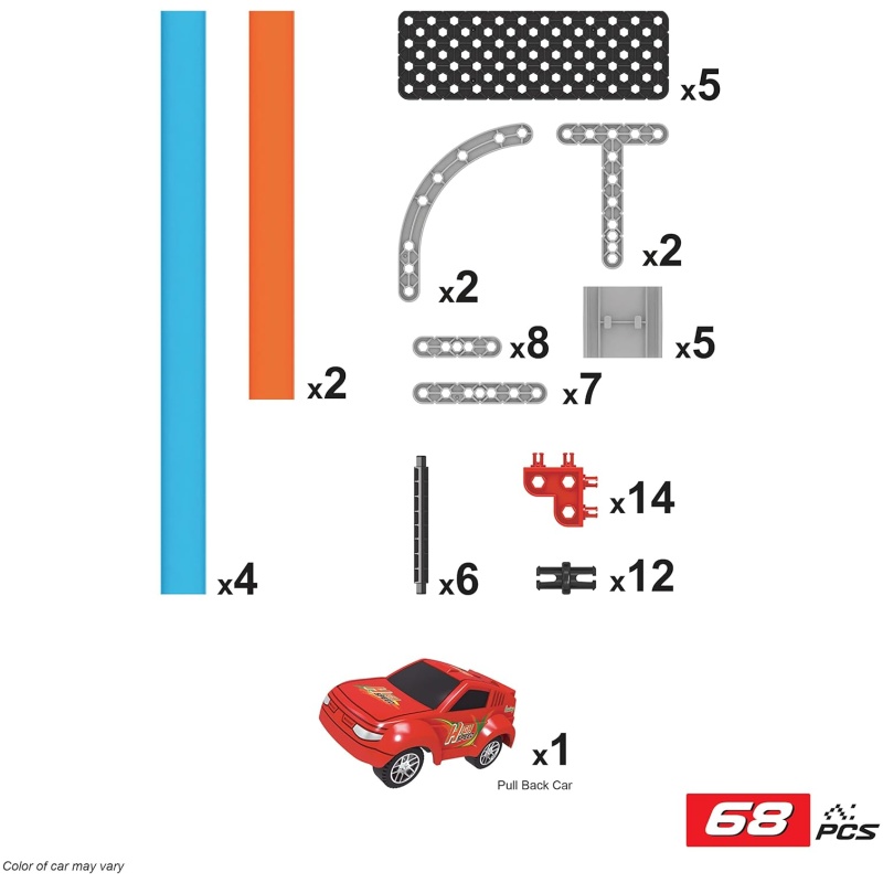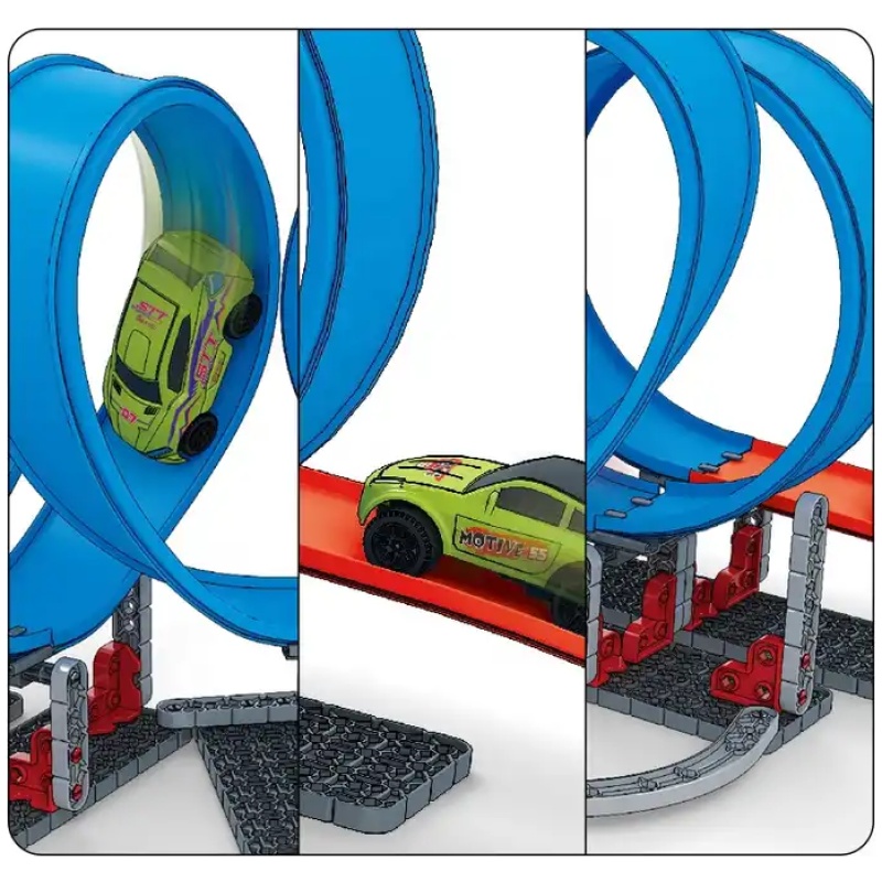 - Set staza za izgradnju i utrku s dvostrukim petljama sa 68 dijelova