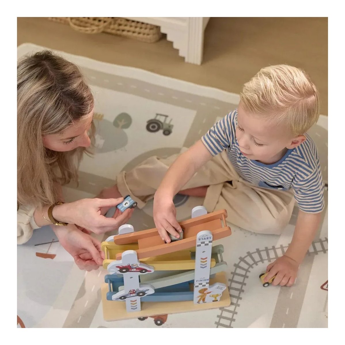 Što ovu stazu čini neodoljivom? Osim što je izrađena od kvalitetnog drva i obojana sigurnim bojama na bazi vode, ova igračka predstavlja savršen spoj estetike i funkcionalnosti. Sa svojim prekrasnim prirodnim dizajnom, ona nije samo alat za igru, već i divna dekoracija koja će obogatiti svaku dječju sobu. Set uključuje četiri mala autića, osiguravajući da svaki put niz stazu bude nova avantura. Dimenzije od 28 x 28 x 10 cm čine je savršenom za male ruke i omogućuju jednostavno postavljanje bilo gdje u domu.