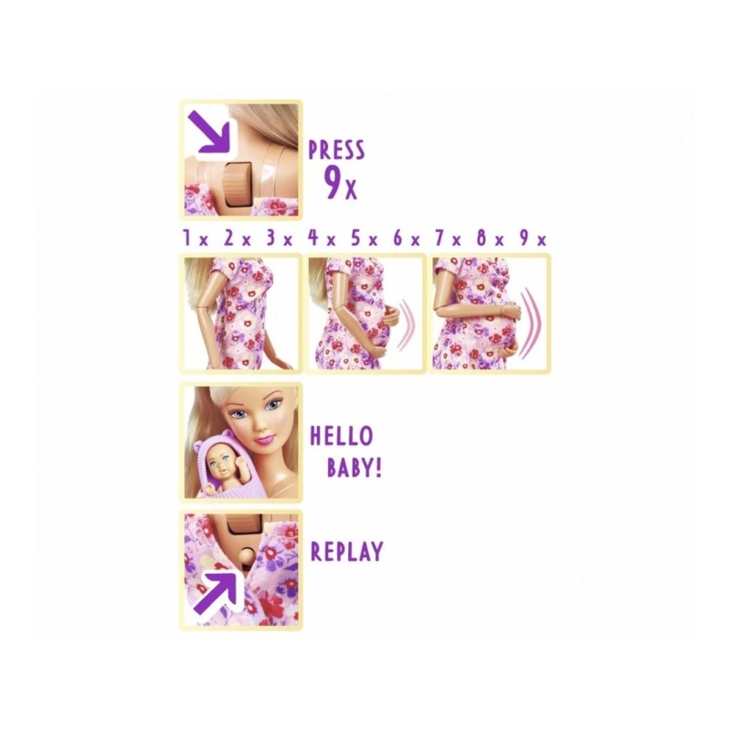 Što lutku Steffi Love Hello Baby čini posebnom? Riječ je o interaktivnom iskustvu koje oduševljava svakog mališana. Za razliku od drugih igračaka, Steffi ima poseban mehanizam koji omogućuje njenom trbuščiću da raste i simulira trudnoću. Svaki pritisak na tipku donosi dijete bliže rođenju, a nakon devetog pritiska, vaša će se mala Steffi doista “poroditi”! Ovaj inovativni pristup igri omogućuje djeci da iznova i iznova prožive radost dolaska novog člana obitelji.