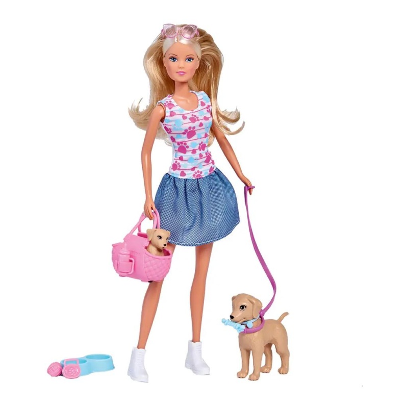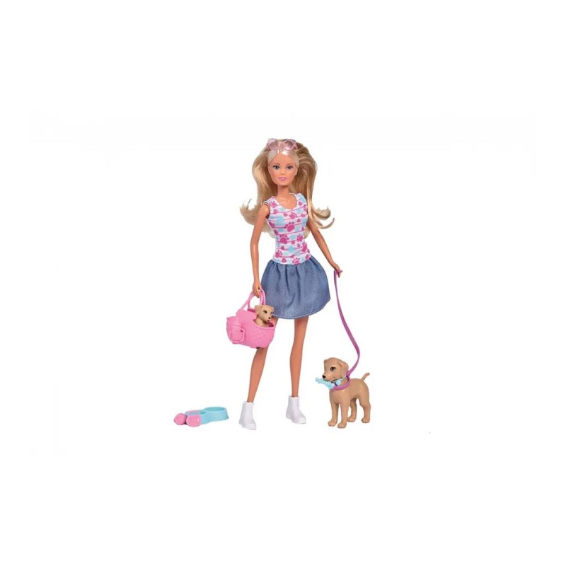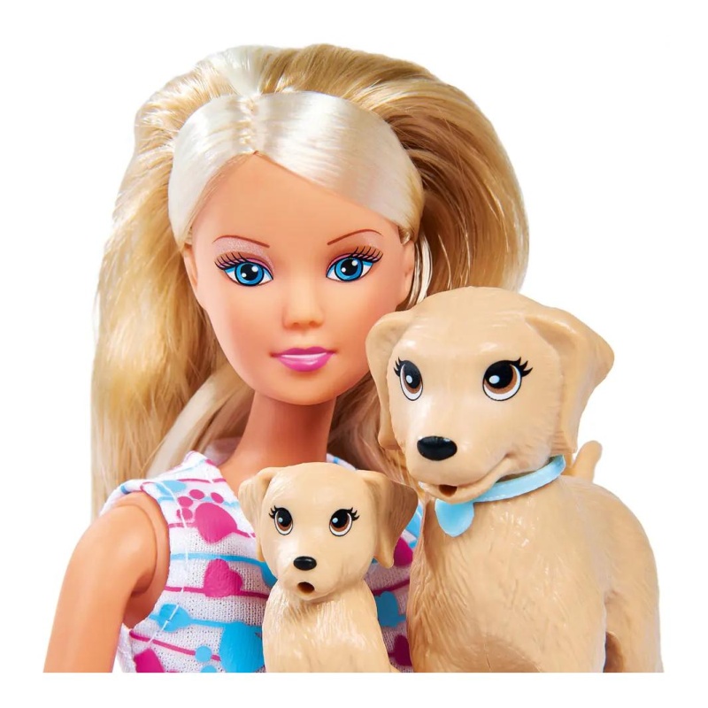 Steffi voli svoje kućne ljubimce i uvijek ih vodi sa sobom! Ova prekrasna lutka dolazi s mamom psom i preslatkim psićem u torbi za nošenje. Uz njih dolaze i dodaci za pse kako bi igra bila još realističnija. Mališani mogu smišljati vlastite priče, brinuti se o psićima i uživati u igri punoj ljubavi i nježnosti.