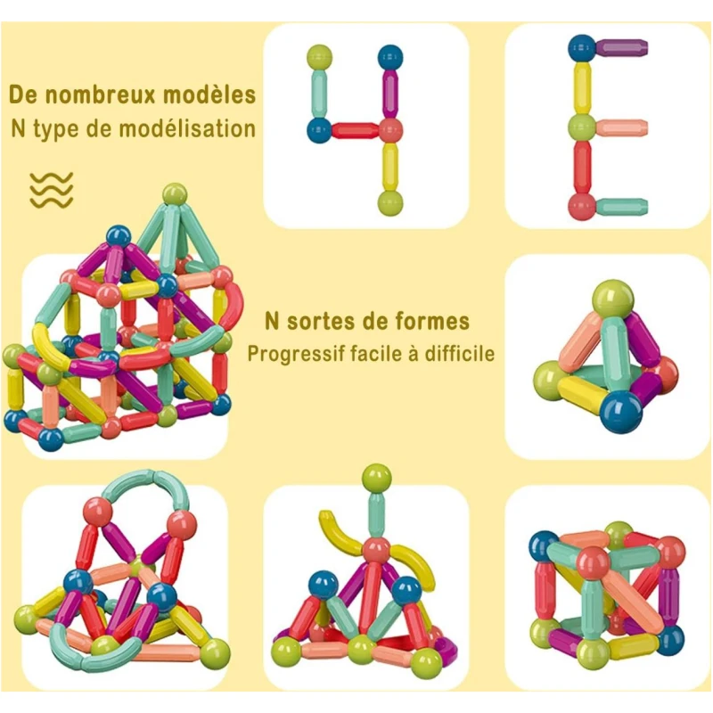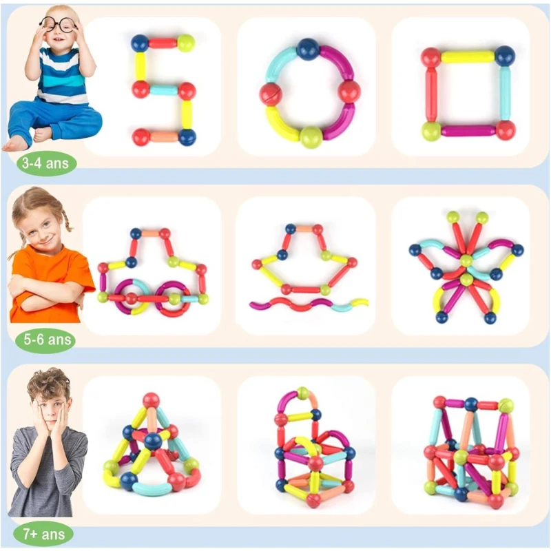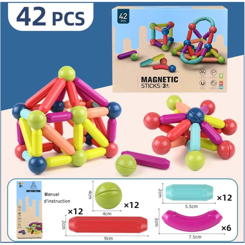 Materijal – Dječja magnetska konstrukcijska igra koristi siguran ABS materijal, siguran i bez mirisa, tako da se beba može udobno igrati. Imajući u vidu da djeca često stavljaju igračke u usta, proširili smo dizajn magnetskih šipki i magnetskih kugli kako bi bebe mogle sigurno igrati.