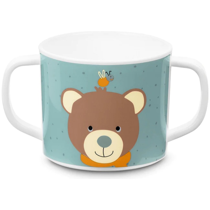Praktični set posuđa s prekrasnim motivom medvjedića Bena prikladan je za bebe i djecu od 6 mjeseci starosti. Set se sastoji od tanjura s dva udubljenja, zdjele, šalice s dvije ručke, vilice i žlice. Svi predmeti su robusni i sigurni za hranu, što ih čini idealnim za najmlađe. Zahvaljujući visokokvalitetnom materijalu od 100% polipropilena, svi dijelovi se mogu sigurno prati u perilici posuđa. Dječje posuđe nije prikladno za mikrovalnu pećnicu.