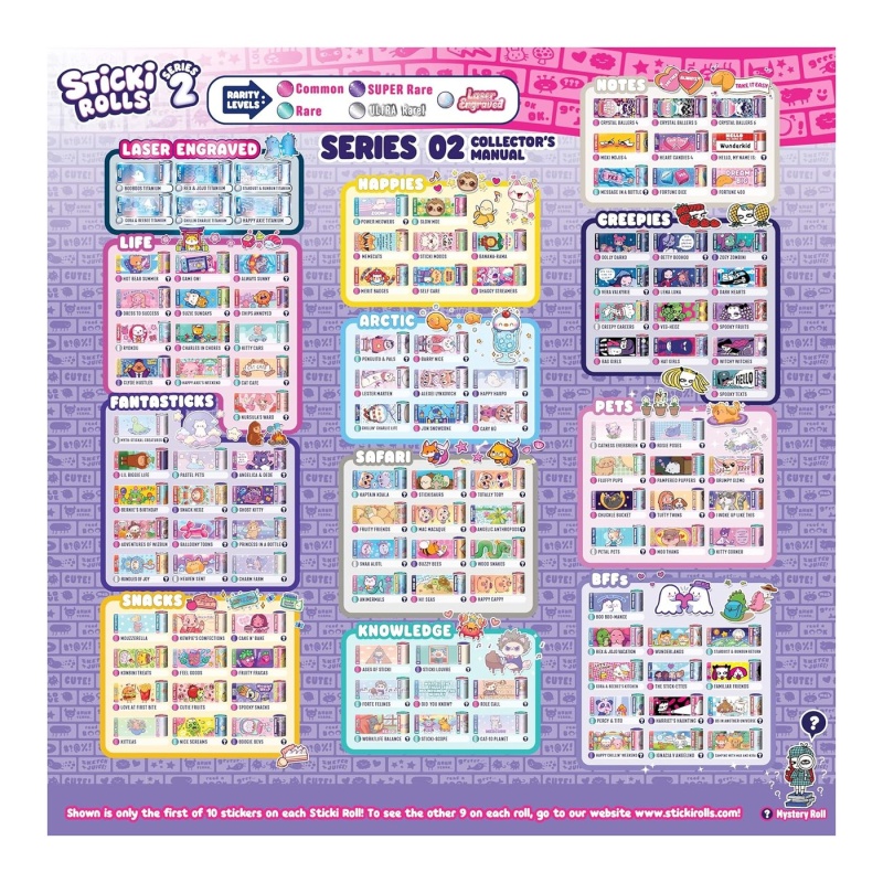 Unutar svakog seta krije se 12 misterioznih Sticki Rollova koji su izuzetno rijetki ili ultra rijetki. Ovi posebni rolni dolaze s jedinstvenim holografskim efektima i simpatičnim Kawaii likovima, čineći svaki trenutak otvaranja uzbudljivim iskustvom. Potraga za ovim naljepnicama postaje avantura koja potiče kolekcionarsku strast i uzbuđenje otkrivanja. Uz preko 1000 naljepnica za prikupljanje, svaki Sticki Station set donosi novo iznenađenje i priliku za proširenje kolekcije.