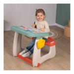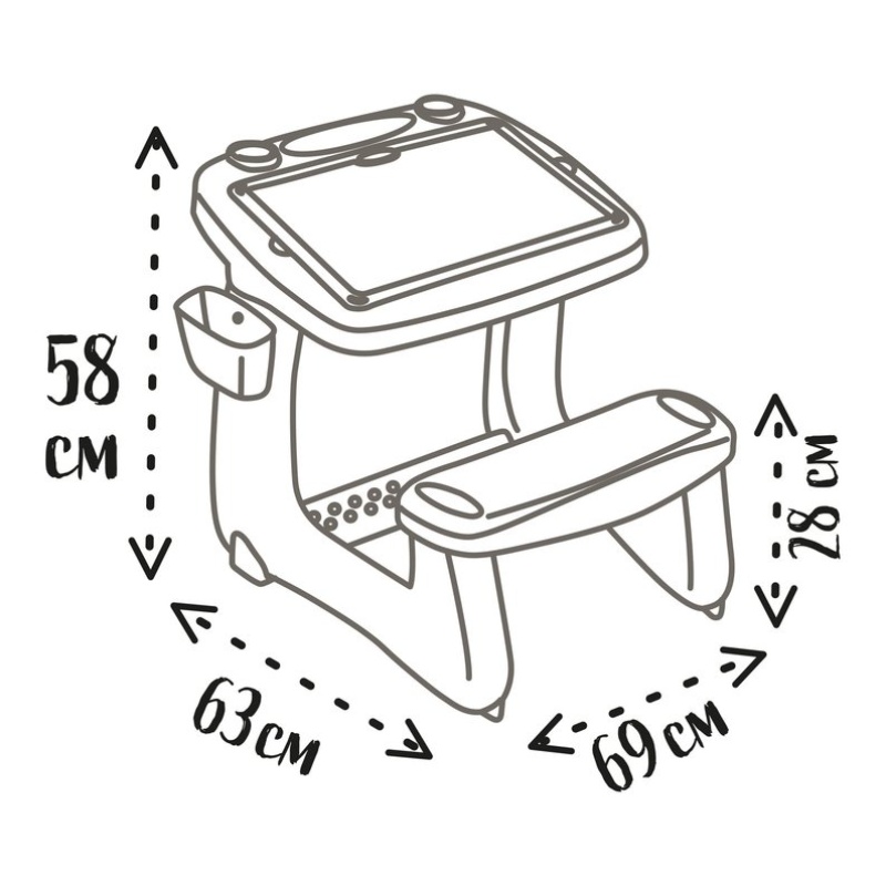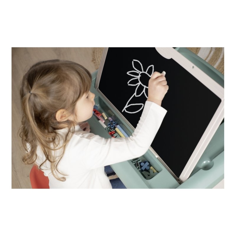Ono što izdvaja ovaj stol od drugih je dvostrana ploča, pružajući neograničene mogućnosti za razvoj mašte vašeg djeteta. Jedna strana je crna ploča, savršena za crtanje kredom, dok je druga strana bijela i magnetska, omogućujući pisanje i igru s magnetnim slovima i brojevima. Ova dinamična kombinacija potiče razvoj motoričkih vještina i uči dijete osnovama pisanja i matematike na interaktivan način.