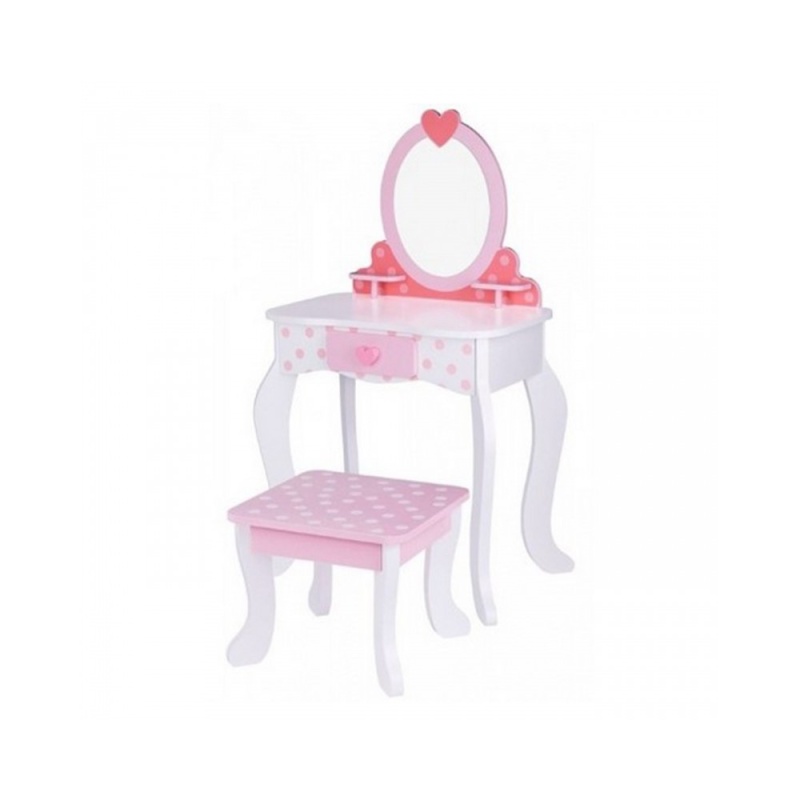 Zamislite svijet gdje vaša mala princeza može istražiti svoju maštu u sigurnom i kreativnom okruženju. Stol za uljepšavanje nije samo običan komad namještaja; on je čarobni kutak gdje se snovi o ljepoti pretvaraju u stvarnost. Njegov dizajn, izrađen od visokokvalitetnog drva s netoksičnom bojom, osigurava bezbrižnost za roditelje i potpuno zadovoljstvo za djecu.