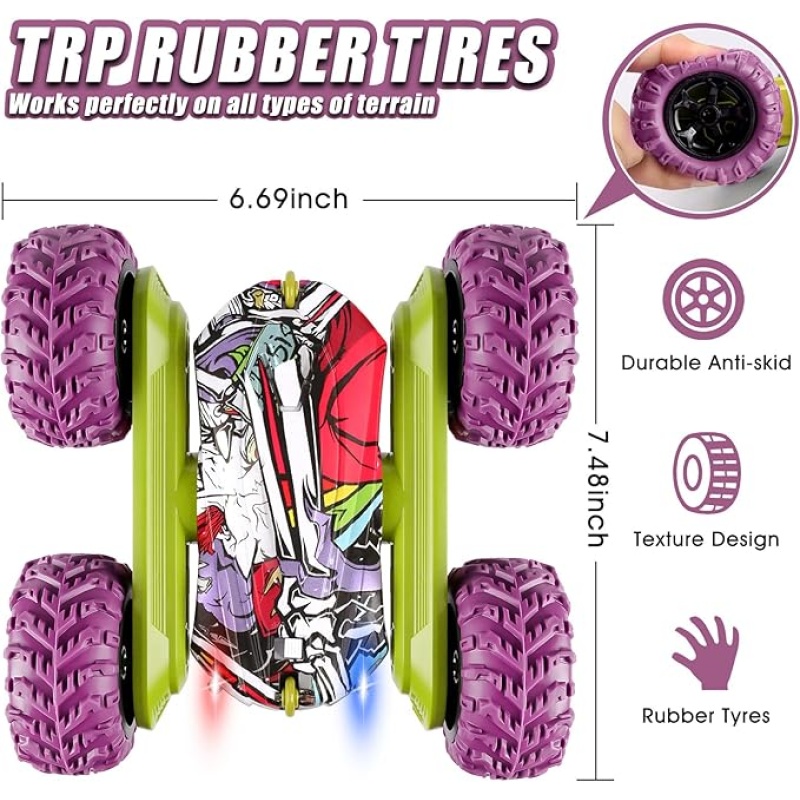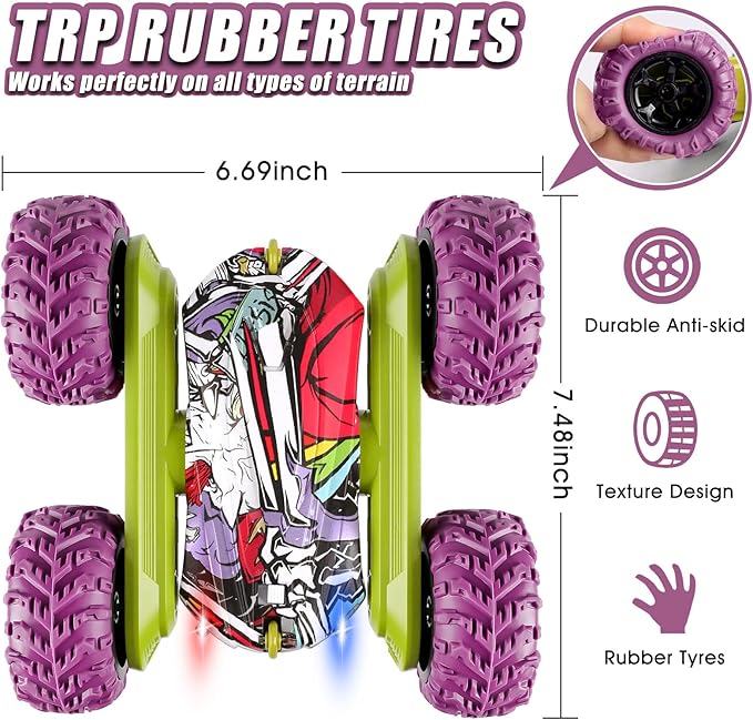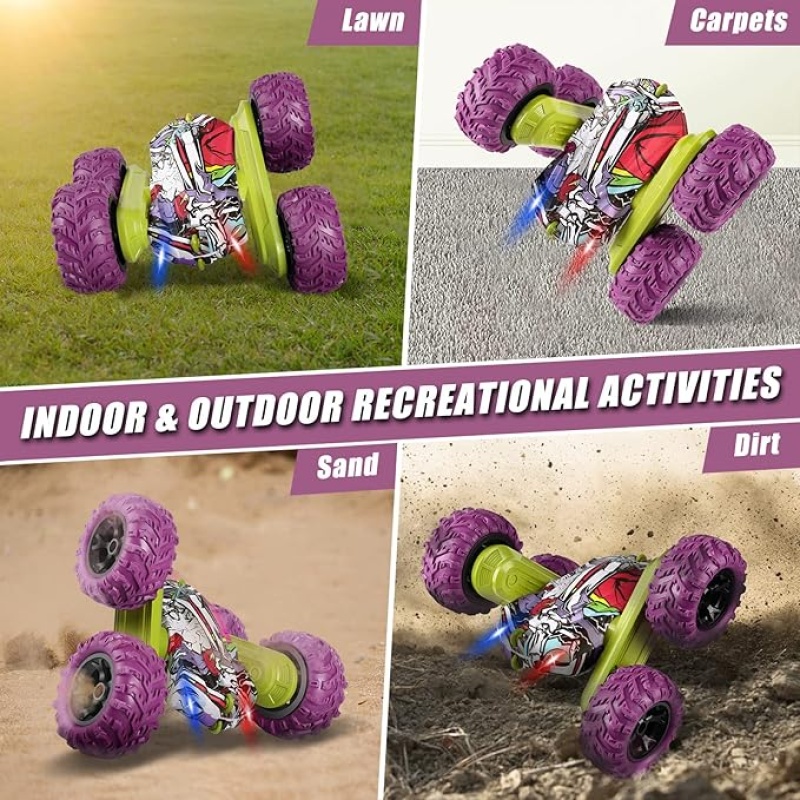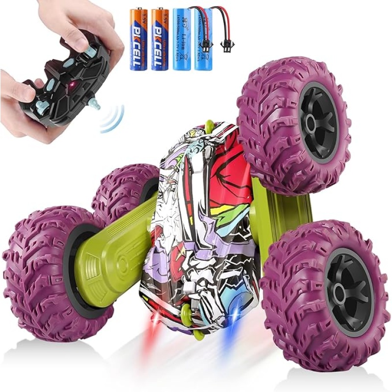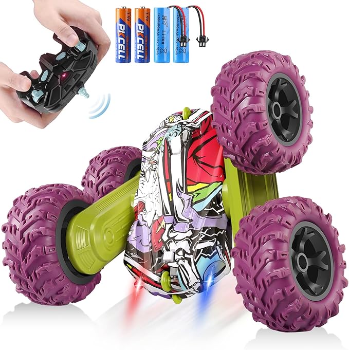 Snažni terenski kotači s apsorpcijom udaraca i dvostruki motorni pogon omogućuju vožnju po travi, pijesku, brdima i svim vrstama neravnih terena. Napravljen od izdržljive ABS plastike i protukliznih guma, ovaj auto je gotovo neuništiv – spreman na sve kaskaderske izazove!