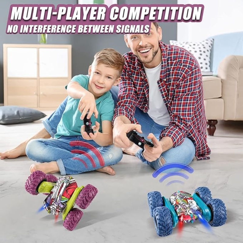 Zahvaljujući daljinskom upravljaču od 2,4 GHz, moguće je upravljati više automobila istovremeno bez smetnji – idealno za utrke s prijateljima! Uz dvije punjive baterije i do 61 minute igre, zabava nikad ne prestaje. Savršen spoj tehnologije, izdržljivosti i uzbuđenja!