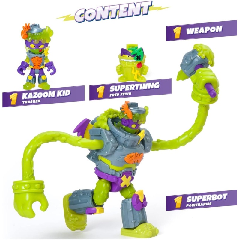 Superbot Trasher ne samo da je snažan, već je i izdržljiv. S njim je Superthing, jedan od najagilnijih superheroja koji mu pruža podršku u svakoj borbi. Ovaj set je savršen za sve mlade nadobudne superjunake koji žele biti dio nevjerojatnih avantura.