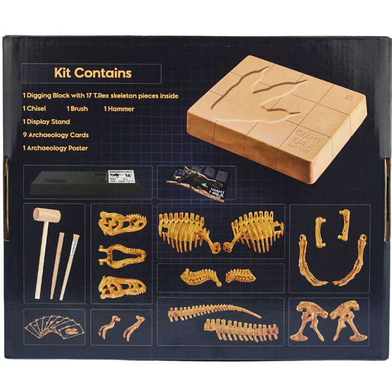 S T-Rex vaš mali istraživač će odmah biti privučen mogućnošću da se upuste u pravu paleontološku ekspediciju. Set dolazi s pažljivo izrađenim alatima – čekićem, dlijetom i četkicom – koji omogućuju djeci da pažljivo i s preciznošću otkriju 17 autentičnih kostiju dinosaura skrivenih unutar kvalitetne gipsane mase.