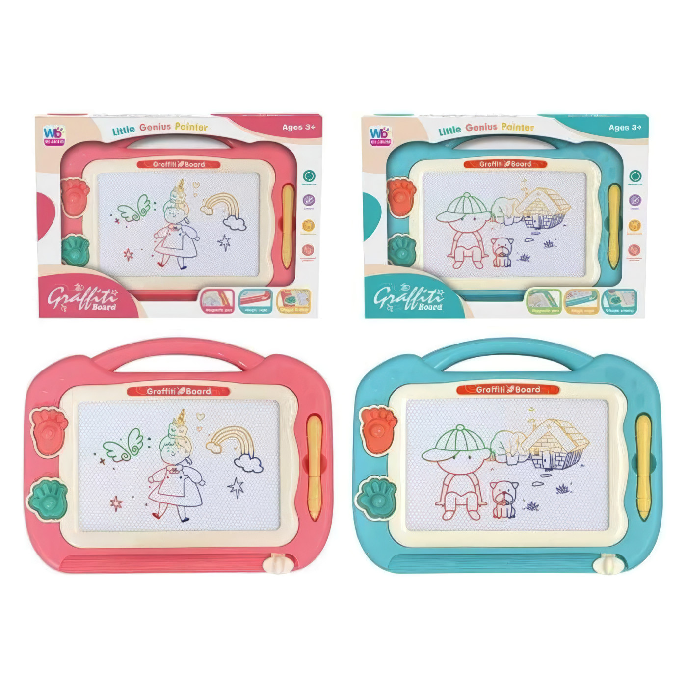 Zahvaljujući praktičnom dizajnu, lako se koristi kod kuće, u autu ili u gostima. Uz ovu tablu svaki mali umjetnik ima priliku stvoriti remek-djelo kad god poželi, a roditelji mogu uživati u trenucima mira i tišine. Poklonite svom djetetu prostor za slobodnu igru i učenje!