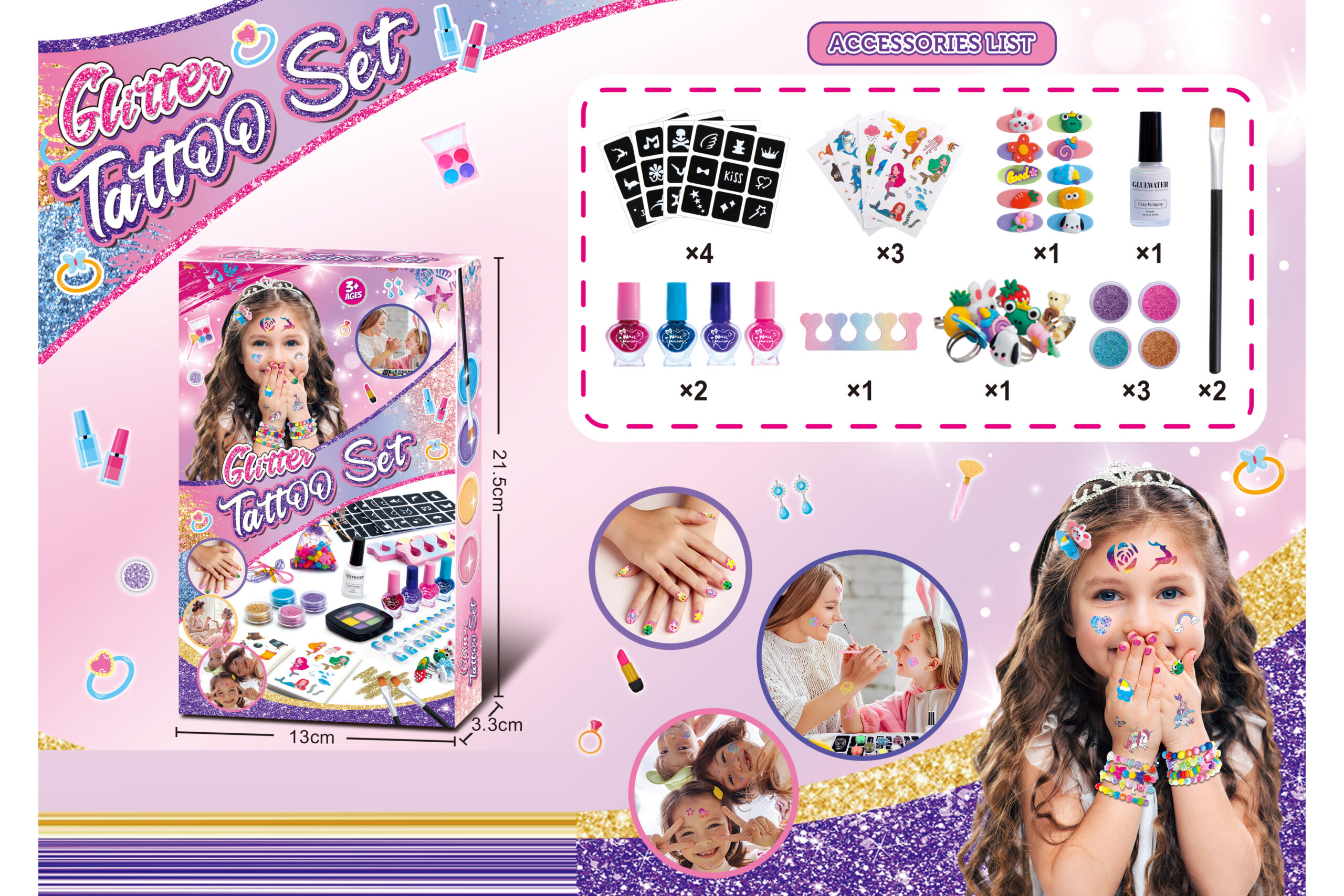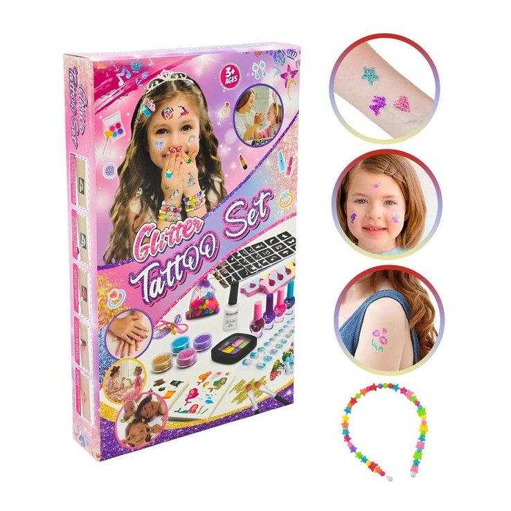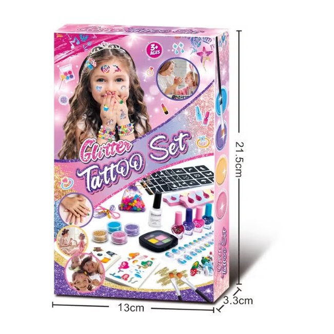 Uđite u svijet čarolije i sjaja s Tattoo setom za djevojčice! Ovaj čarobni set transformirat će svaki trenutak u priliku za igru i kreativnost. Zamislite osmijehe na licima vaših mališana dok istražuju beskonačne mogućnosti ovog kompleta prepunog pailleta, naljepnica, šablona i još mnogo toga.