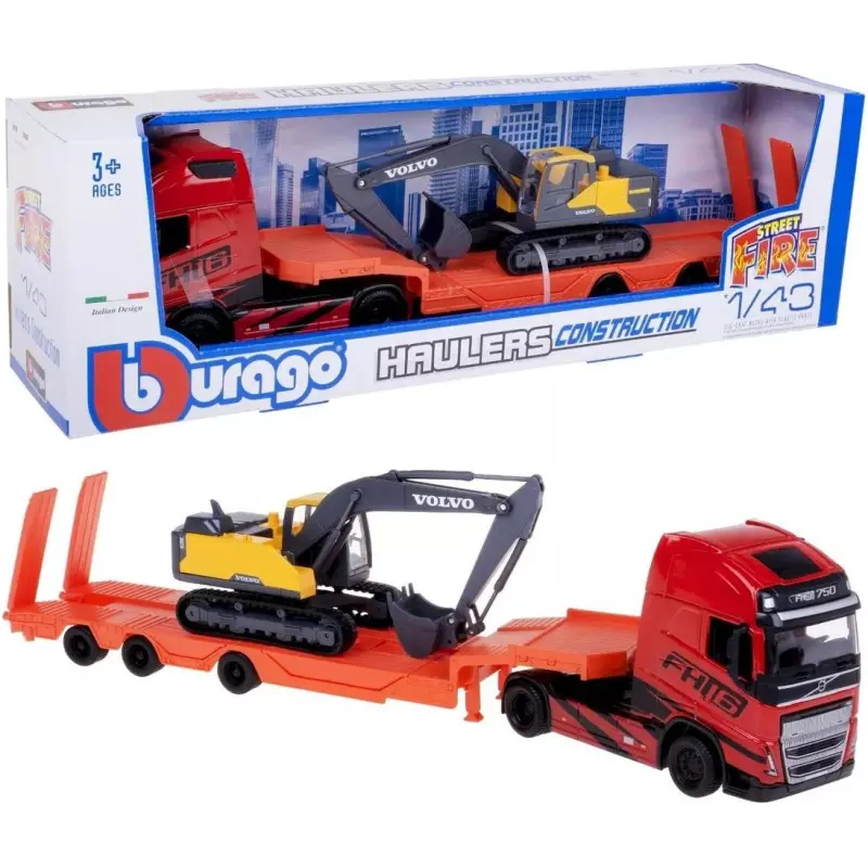 Bburago Volvo FH16 Globetrotter 750XXL sa EC220E 1:43 – vrhunski model teretnog vozila za kolekcionare