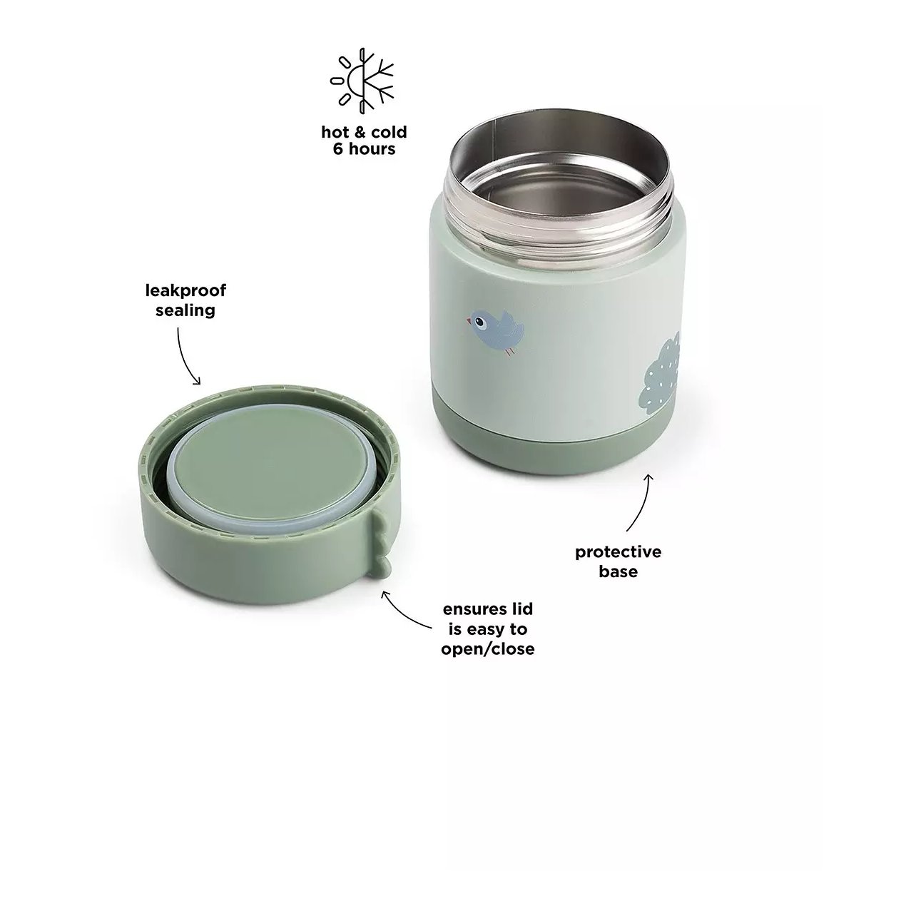 Ono što zaista izdvaja ovu termos posudu je njezina sposobnost da održi hranu toplom ili hladnom do 6 sati. Nema više brige oko temperaturnih promjena koje će pokvariti obrok vašeg djeteta. Sa zapremninom od 300 ml, savršena je za male ručice i idealna za vrtić, školu ili bilo koju vanjsku aktivnost. Njena konstrukcija od nehrđajućeg čelika i PP materijala osigurava dugotrajnost i sigurnost, dok će praktična ručka olakšati nošenje.