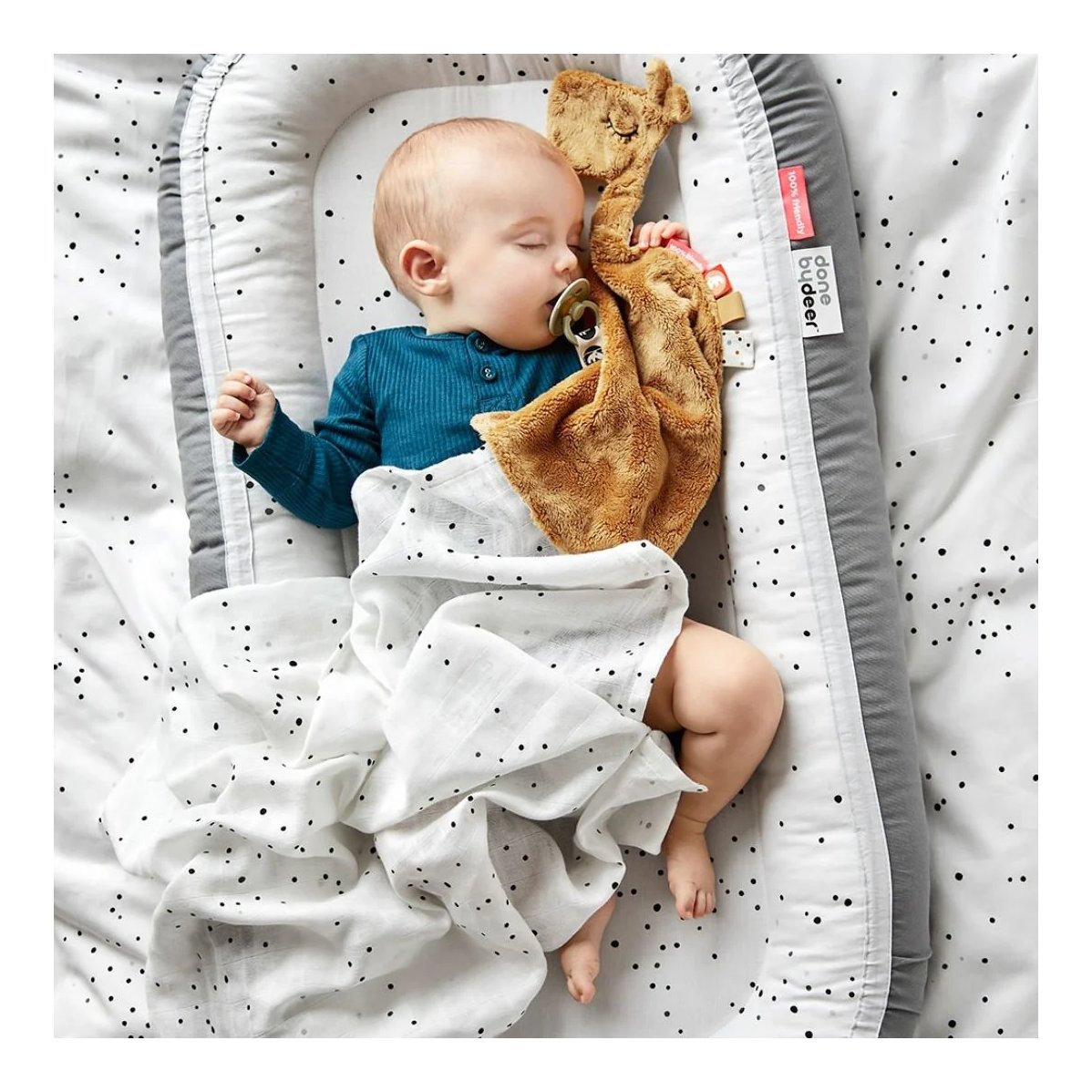Ono što Done By Deer Tetra Pelene čini posebnima je njihova prilagodljivost u svakom trenutku bebinog dana. Dimenzije od 120 x 120 cm omogućuju vam beskonačan niz upotreba – od povijanja, dojenja, do lagane dekice za tople dane. Njihova izuzetna prozračnost osigurava optimalnu temperaturu i udobnost, dok jednostavan, ali sofisticiran dizajn u crno-bijelim tonovima unosi dašak stila u vašu svakodnevicu.