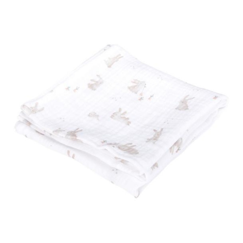Bilo da ih koristite kao dekicu, zaštitu od sunca, podlogu za presvlačenje ili maramicu za čišćenje, ove muslin pelene čine svakodnevicu roditelja jednostavnijom. Set sadrži jednu pelenu s preslatkim motivom zečića i jednu jednobojnu bež pelenu – idealne su za svaku priliku.