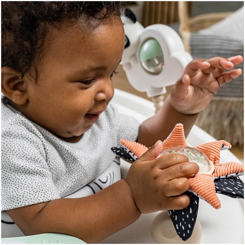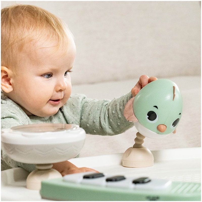 Kada beba udobno sjedi, stavi je u rotirajuće sjedalo i pusti je da uživa u raznim igračkama i aktivnostima – okretanju perlica, sviranju vjetrenjače ili udaranju bubnja s perlama. Ova raznovrsna senzorna stimulacija pruža malenima vizualnu, zvučnu i taktilnu stimulaciju.