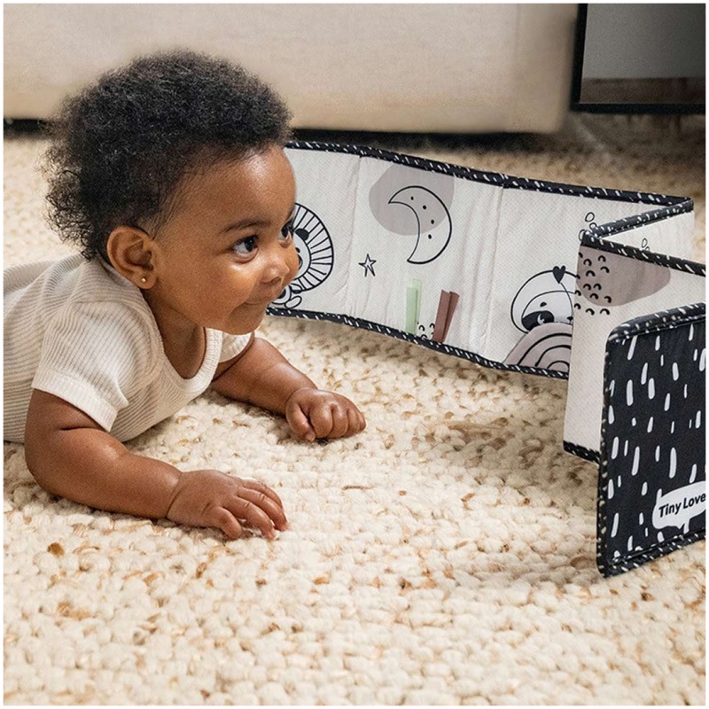 Tražite savršen način da podržite razvoj vaše bebe i produžite vrijeme na trbuhu? Tiny Love Book Black And White je idealan izbor za vas! Ova predivna knjiga sa dvije strane pruža brojne aktivnosti koje su dizajnirane kako bi oduševile vašu bebu i potaknule njen razvoj.