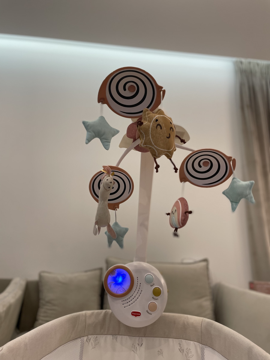 Vrtuljak  raste s bebom, pretvarajući se u samostojeću kutiju za glazbu kada više nije potrebno koristiti vrtuljak u krevetiću. Noćno svjetlo na vrtuljku pomaže bebi da mirno zaspi.