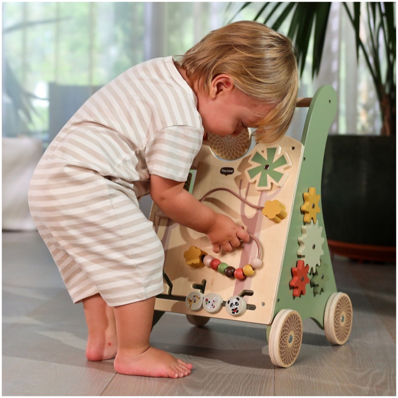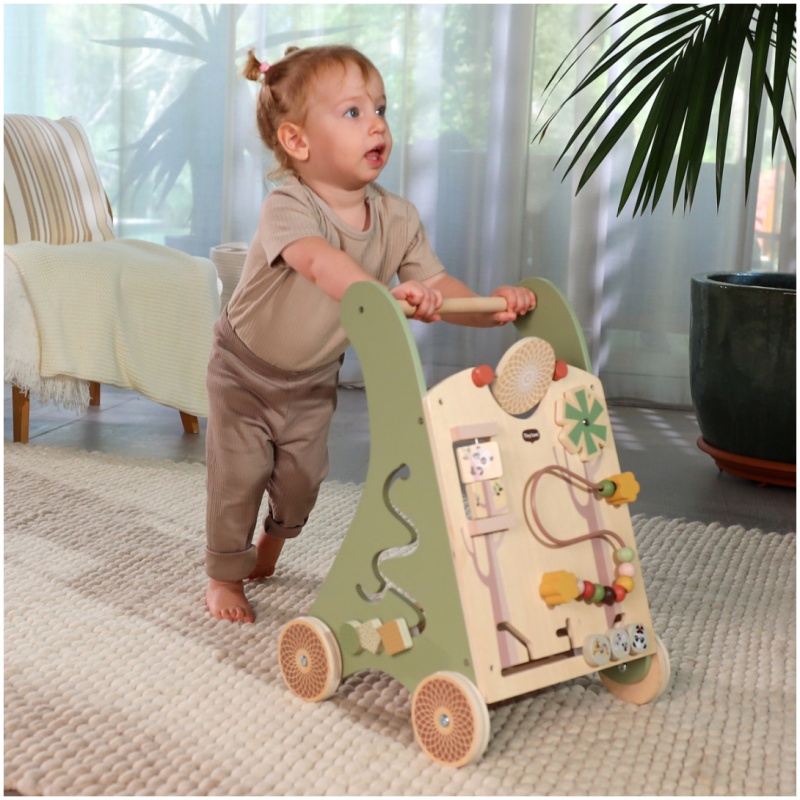 Drvena hodalica guralica u prekrasnom, senzornom dizajnu, izrađena od visokokvalitetnog drva, potiče rast i razvoj vašeg mališana uz 11 zabavnih aktivnosti.
