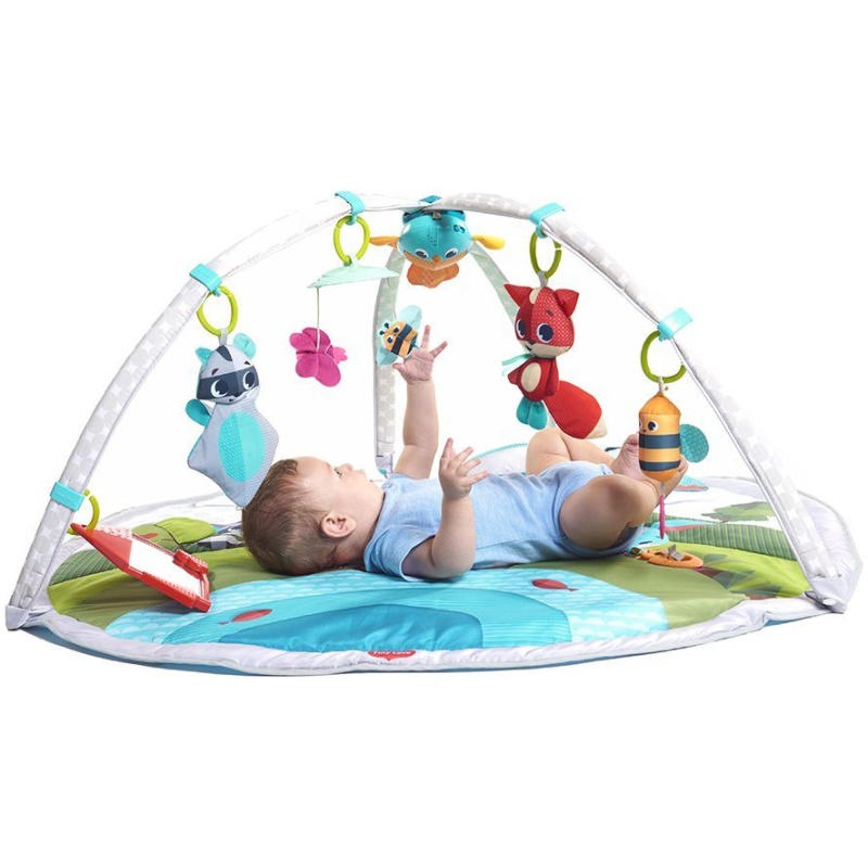 Podloga za igru proizvođača Tiny Love. Lijepog je dizajna, ugodnih veselih boja, mekanog materijala i jako praktična. Namjenjena je za bebe. Dolazi s integriranim igračkicama te se može koristiti na više načina, kao cjelokupna igračka, kao podloga za bebu, podloga za igru dvije bebe. Ima mogućnost snimanja maminog glasa kako bi beba pritiskom na ptičicu čula mamine riječi. Od kvalitetnih je materijala i sigurna za bebu. Ima više funkcija, integriranih igračaka, glodalice, više različitih materijala kako bi potaknulo bebina osjetila. Idealan je poklon za svaku bebu. Pokrov je periv u perilici. |