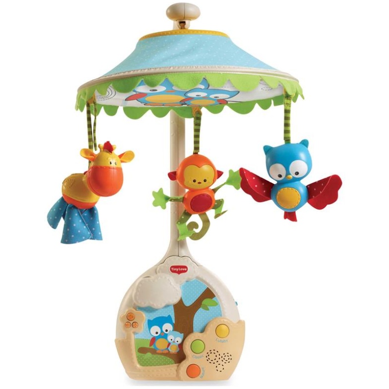 Zanimljivi vrtuljak 3u1za bebe koji se prikači na bebin krevetić od proizvođača Tiny Love.  Zanimljivih je i veselih boja, kvalitetnih materijala. Vrtuljak ima glazbu, 9 melodija u 3 glazbene kategorije.  Pomažu pri uspavljivanju bebe. Također posjeduje i noćno svjetlo koje dok je beba mala projicira motive na pokrov vrtuljka, kada je beba malo veća projicira motive na strop, a kada beba pođe puzati služi kao noćno svjetlo. Proizvod je 3 u 1 tj. koristi se kao vrtuljak za krevetić dok je beba mala, veseli glazbeni dio, kao i noćno svjetlo.