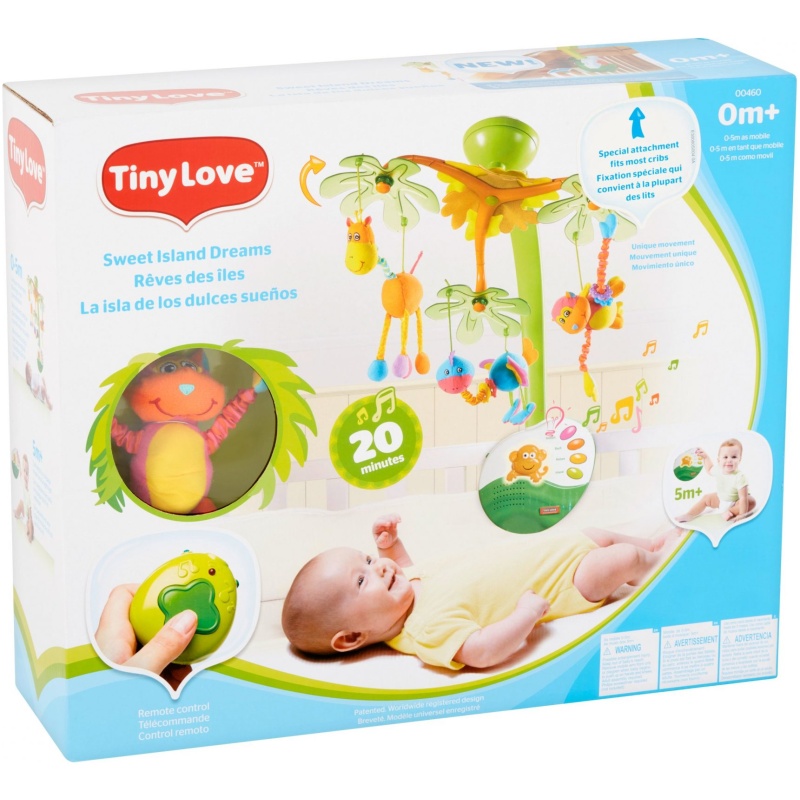 Zanimljivi vrtuljak 3u1 za bebe koji se pričvrsti na bebin krevetić od proizvođača Tiny Love. Zanimljivih je i veselih boja, kvalitetnih materijala. Vrtuljak ima glazbu, 2 melodija i 2 zvuka. Pomažu pri uspavljivanju bebe. Također posjeduje i noćno svjetlo. Proizvod je 3 u 1 tj. koristi se kao vrtuljak za krevetić dok je beba mala, veseli glazbeni dio, kao i noćno svjetlo.
