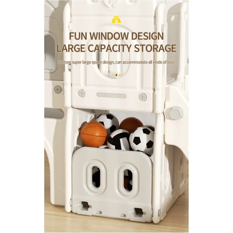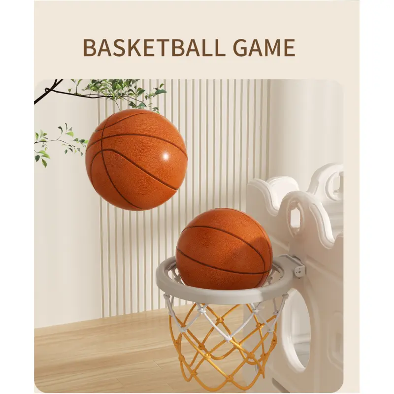 Ali to nije sve! Ovaj tobogan nudi čak šest različitih aktivnih zona koje će zabaviti i razvijati motoričke vještine vašeg djeteta. Sa stepenicama za penjanje, klizalištem za uzbudljive spustove, prostorom za košarku za sportsku igru, mjestima za skrivanje za avanturističke trenutke, pa čak i prostorom za bacanje prstena za vježbu preciznosti, vaše dijete će imati neograničenu zabavu i priliku za rast i razvoj.