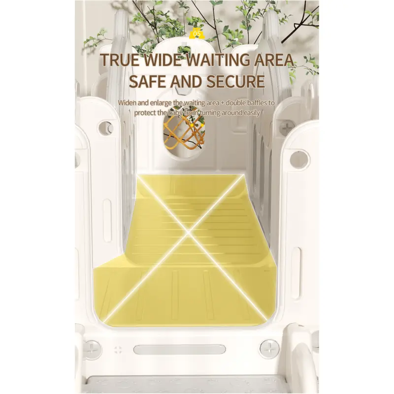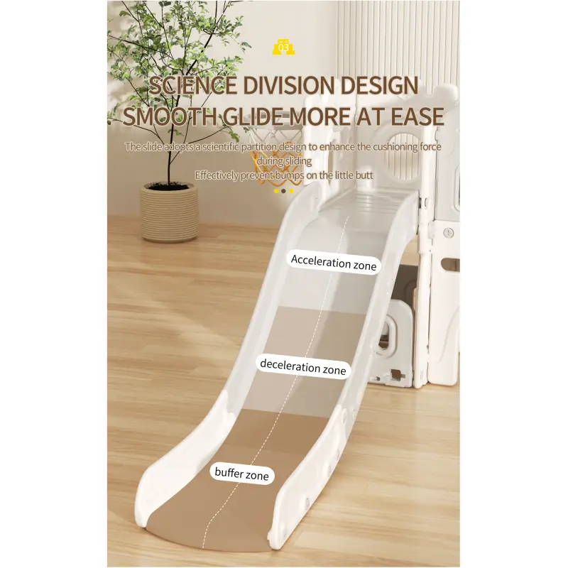 Važno nam je da se vaša djeca osjećaju potpuno sigurno tijekom igre, stoga smo ovaj tobogan dizajnirali s tri područja za klizanje – ubrzavanje, usporavanje i područje za ublažavanje. Na taj način, vaša djeca mogu nesmetano uživati u vožnji bez ikakvih rizika. Stepenice su dizajnirane s optimalnom visinom za jednostavno penjanje, a dvostruki rukohvati pružaju dodatnu sigurnost.
