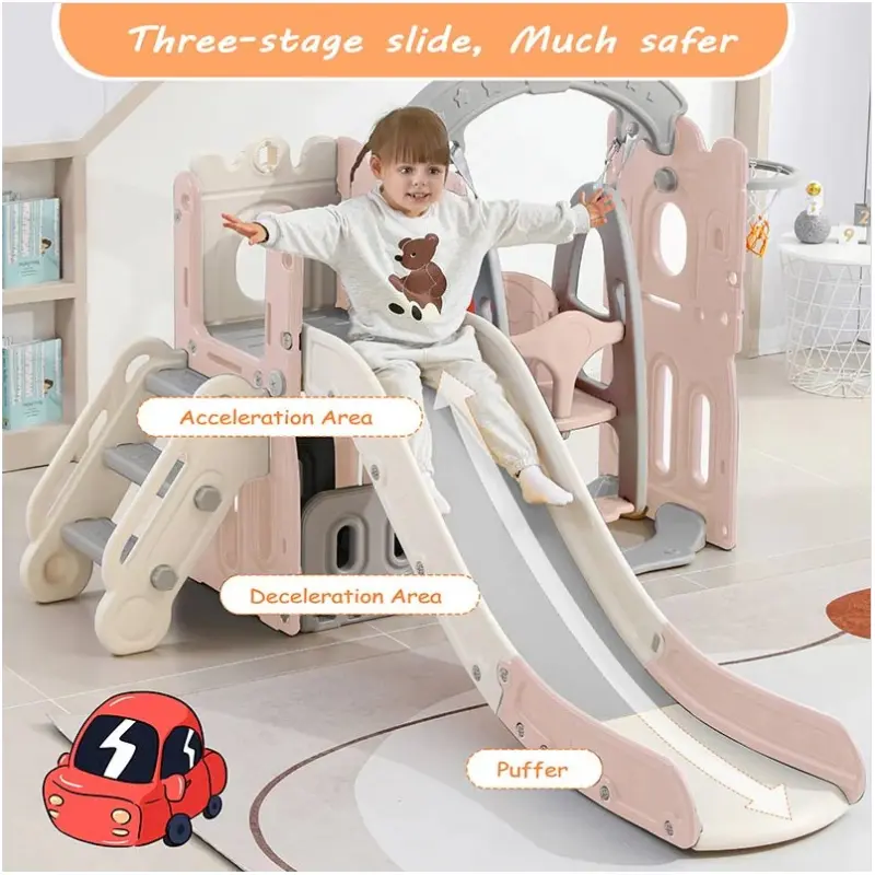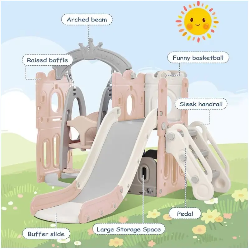 Tobogan s ljuljačkom rozo-sivo je idealan za igru kako unutra tako i vani. Izrađen je od laganih materijala i jednostavan za premještanje. Također se lako sklapa i rasklapa, bez potrebe za alatima. Svojim kvalitetnim i izdržljivim dizajnom, ovaj tobogan će pružiti bezbrojne sate zabave i užitka za vaše mališane, bilo da su kod kuće ili u dvorištu.
