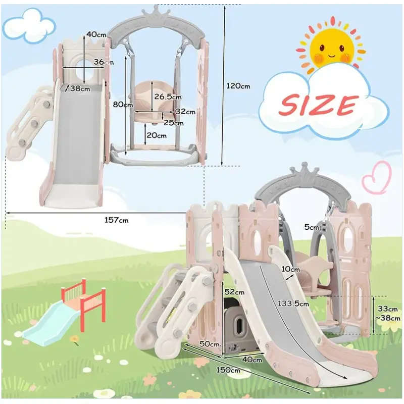 Zamislite kako se ljuljate na prekrasnom ružičasto-sivom toboganu, dok vaša mala princeza s oduševljenjem klizi niz njega. Upustite se u svijet mašte i uživajte u beskrajnoj igri i zabavi koju pruža tobogan s ljuljačkom.