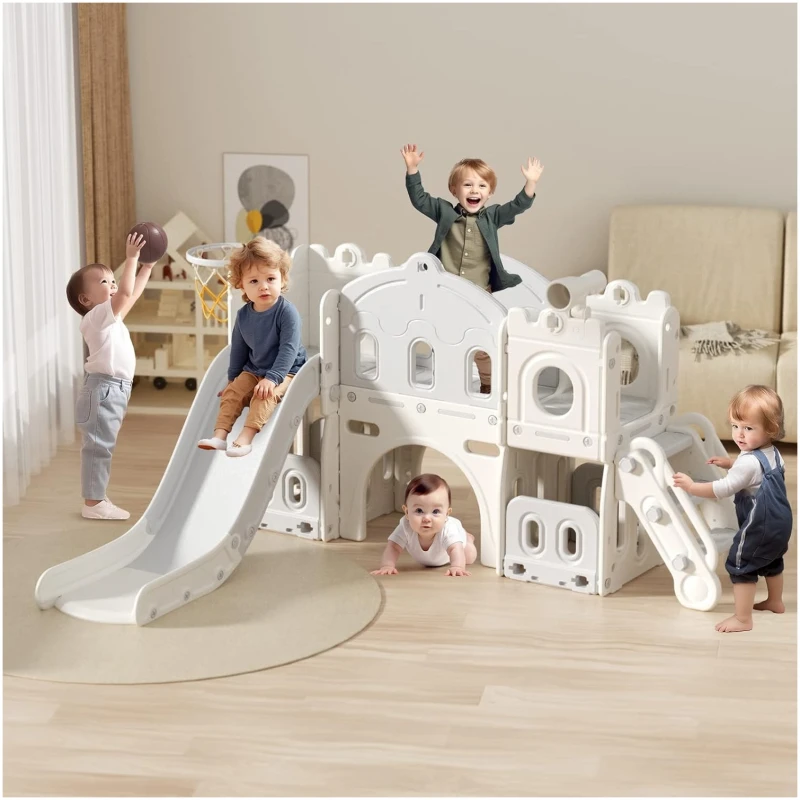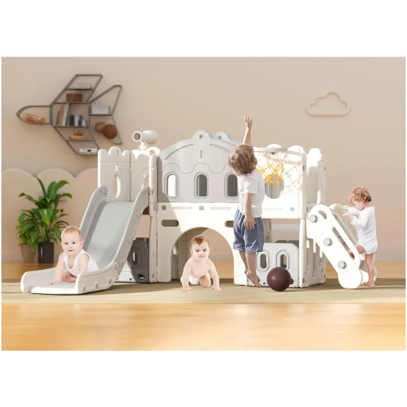 Višestruke avanture 6-u-1 igraonice: Ovaj dječji tobogan može pružiti 6 vrsta zabavnih aktivnosti, uključujući iznimno dugi tobogan, tunel za puzanje, gađanje koša, penjanje stepenicama, prostor za pohranu. Poboljšajte sposobnost tjelesnog razvoja djeteta.