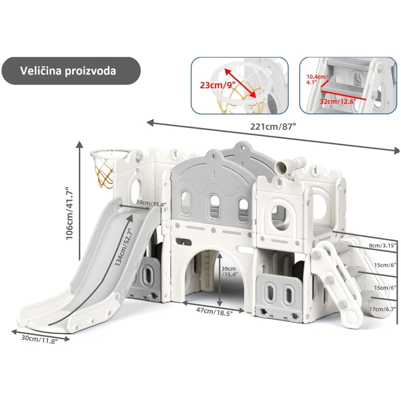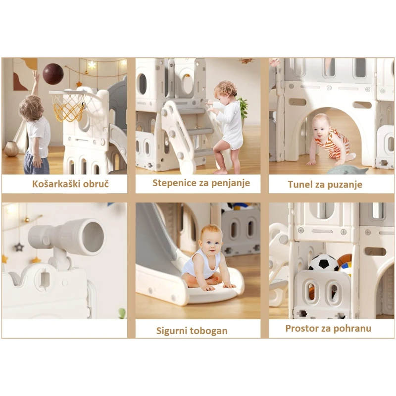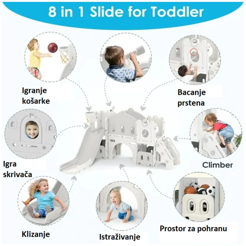 Jedinstveno osmišljen da odgovara potrebama i interesima djece svih uzrasta, ovaj tobogan set pruža nevjerojatnu zabavu koja će oduševiti i mališe i roditelje.