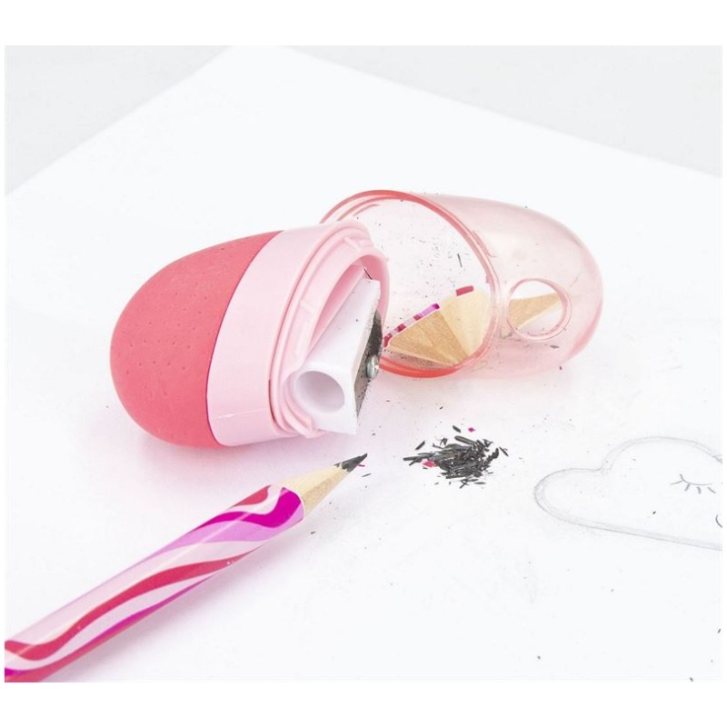 Šiljilo za gumicu koje dolazi u ovom setu može se jednostavno preoblikovati iz duguljastog u oblik srca. Taj detalj daje proizvodu poseban i atraktivan izgled, čime ga čini idealnim za djevojčice koje vole iskazivati svoju kreativnost i individualnost. Dostupno je u tri prekrasne boje – koralnoj, ružičastoj i crvenoj, pružajući mogućnost odabira prema osobnom ukusu.