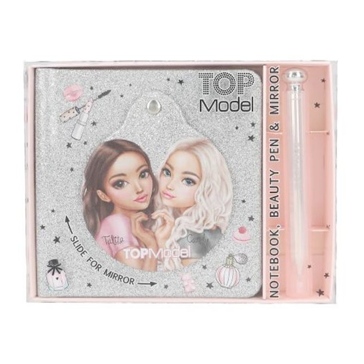 Top Model Beauty Notes s kemijskom olovkom potiče dječju maštu i kreativnost uz šarmantne ilustracije. Kompaktne dimenzije omogućuju lako prenošenje, a dodatni elementi poput skrivenog ogledala povećavaju osjećaj posebnosti. Idealno rješenje za razvoj motoričkih vještina i izražavanje.