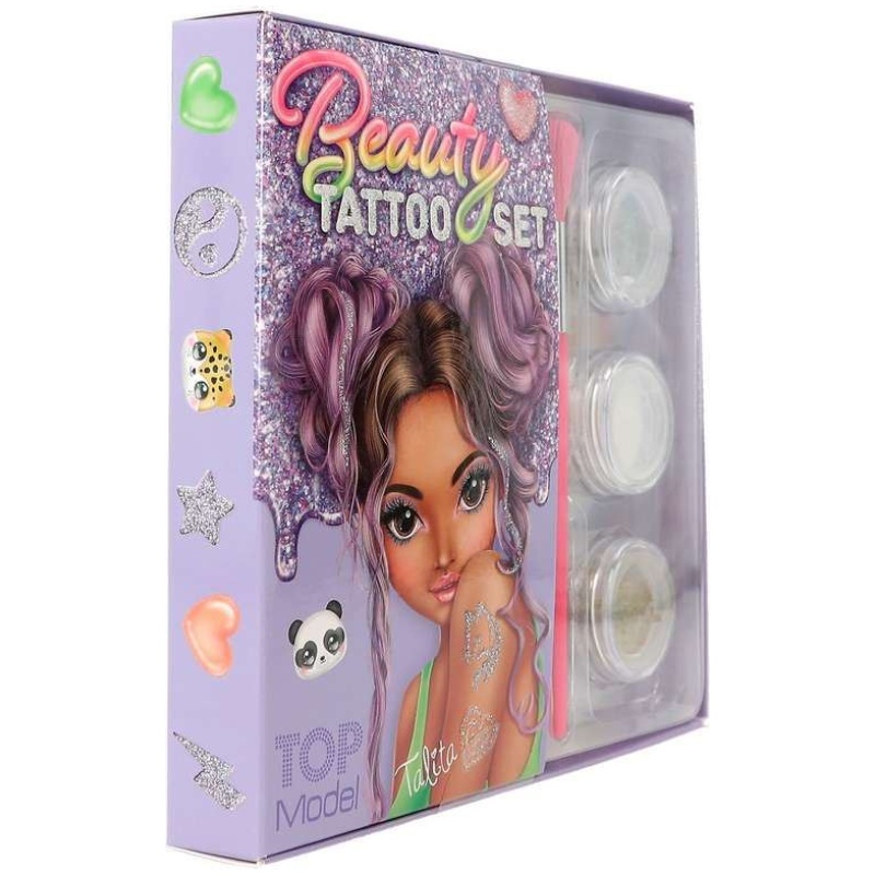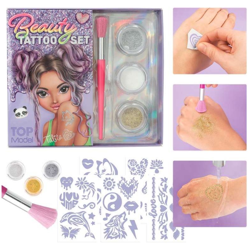 Top Model Glitter Tetovaže Set Beauty And Me je savršen set za sve male umjetnike i ljubitelje tetovaža. Ovaj set će vam omogućiti da kreirate prekrasne i jedinstvene tetovaže koje će se istaknuti na koži s prekrasnim svjetlucavim šljokicama.