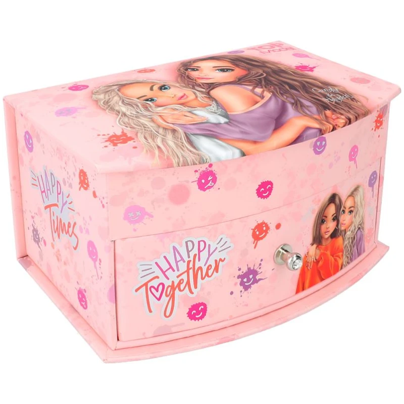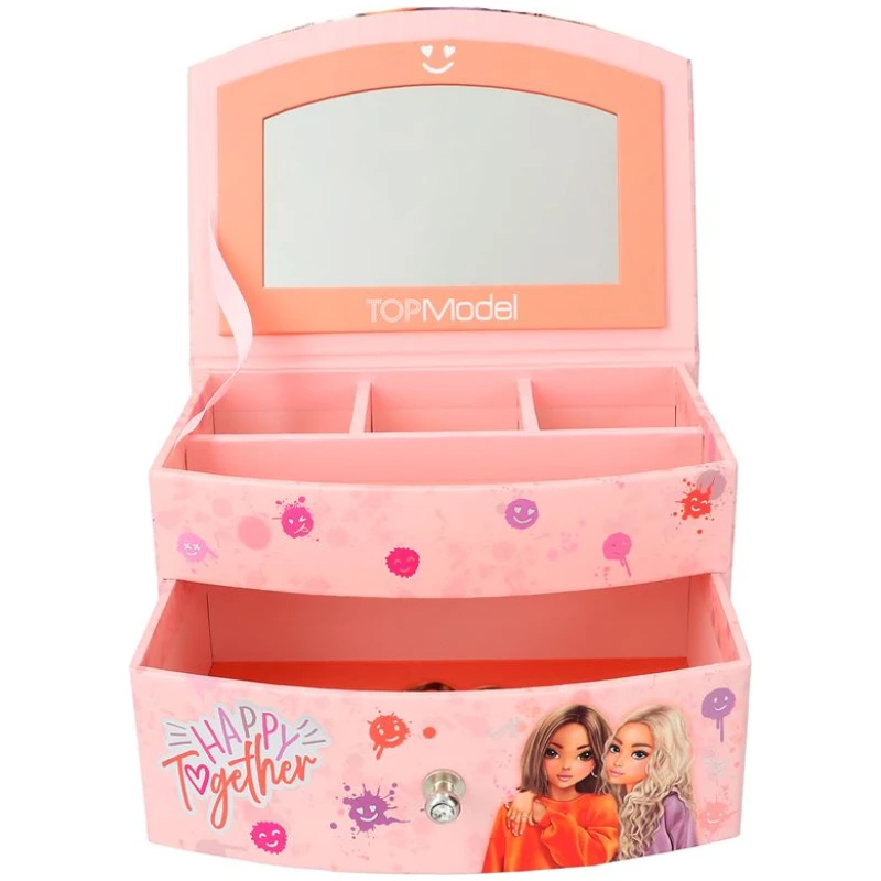 Top Model Kutija za Nakit – Happy Together je savršeno rješenje za sve ljubitelje nakita koji žele osjećaj sreće i zadovoljstva svaki put kad otvore svoju kutiju za nakit. Ova mala kutija je dizajnirana da vam pruži nevjerojatno iskustvo koristeći veselu boju, smiješne smajliće i sjajne motive modela djevojke.