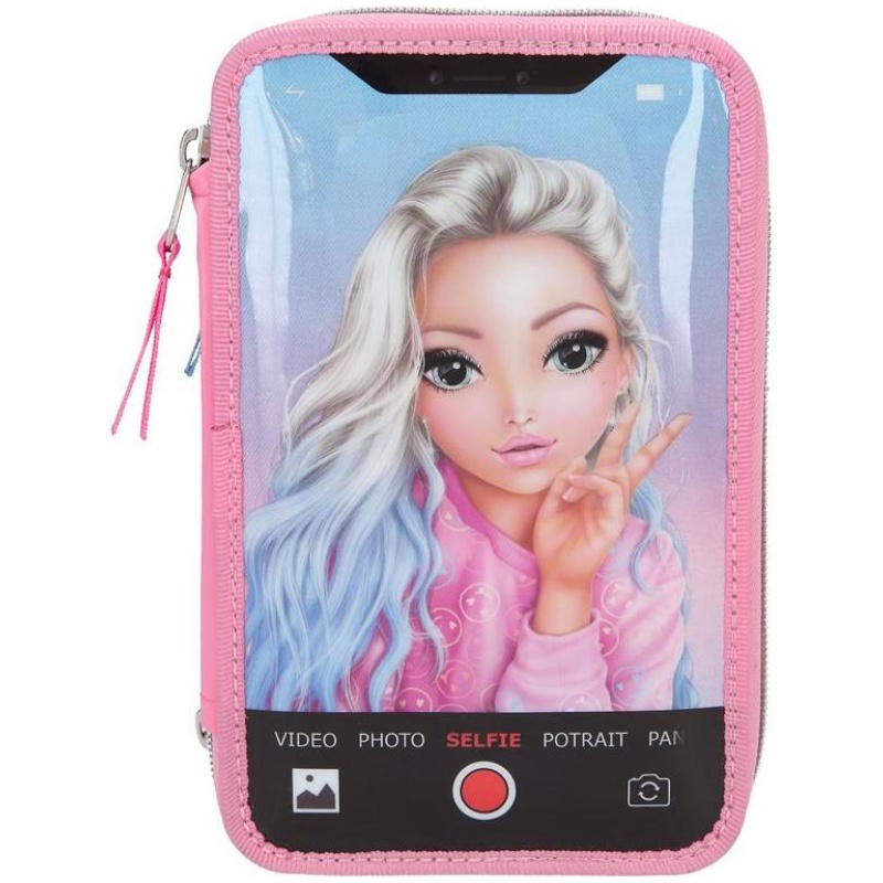 Top model pernica na tri kata sa priborom Selfie Led je idealna za osvježavanje i stiliziranje školskih dana! Ova super pernica u divnoj ružičastoj boji izgleda kao mobilni telefon, sa cool Top Model motivom koji će vas oduševiti.