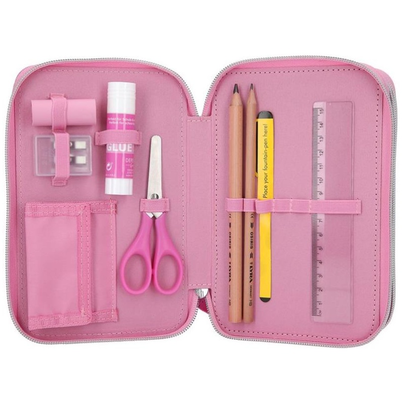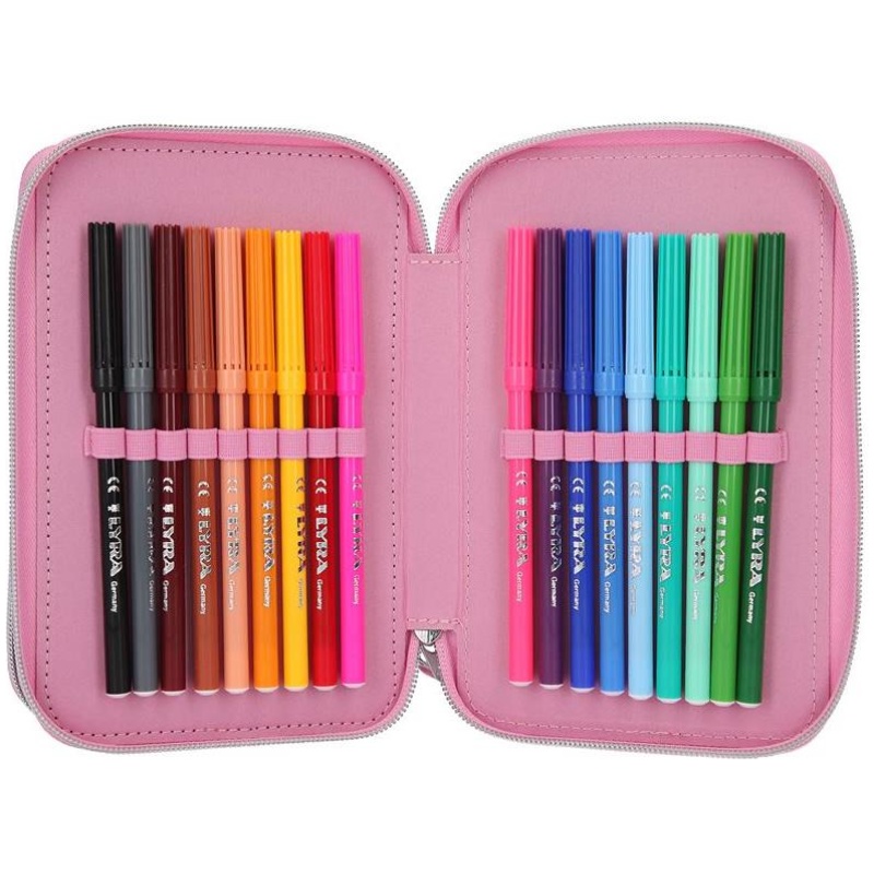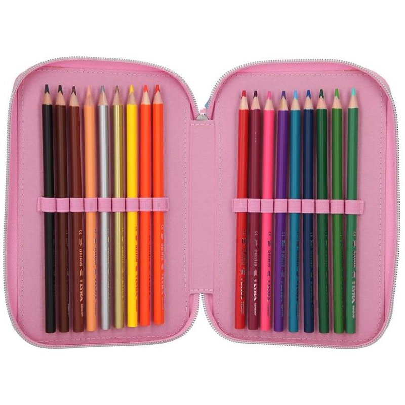 No, Top Model pernica na tri kata nudi mnogo više od samo dobrog izgleda. Ova pernica ima tri odvojena dijela koji su potpuno opremljeni sa svim priborom koji vam je potreban za školu – 18 olovaka u boji, 18 flomastera, 2 olovke (debelu i tanku), ravnalo, šiljilo, škare, gumicu i mali unutarnji džep. Svi ovi pribor dolaze u poboljšanoj kvaliteti drveta i debljim, stabilnijim olovkama, što vam jamči da će vaše umjetničke ideje biti izražene bez poteškoća.