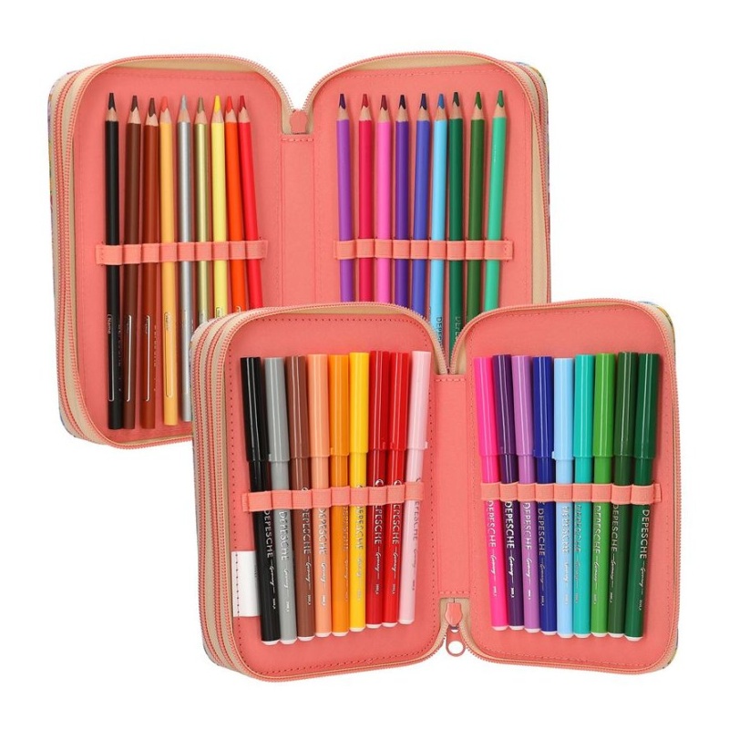 Ova pernica nudi tri odvojena odjeljka, svaki ispunjen raznovrsnim priborom – 18 različitih boja i flomastera, dva osnovna alata za pisanje, šiljilo, gumica, škare i mala torbica na čičak. Sve je tu, spremno za stvaranje umjetnosti ili zapisivanje važnih bilješki.