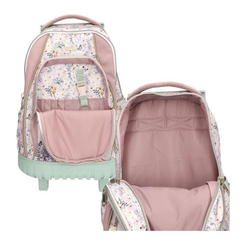 Ova torba s kotačima odiše šarmom i nježnošću s romantičnim motivom modela okruženim cvjetovima i leptirima.
