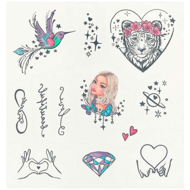 Top Model tetovaže Beauty And Me su savršen način da izraziš svoju ljepotu i kreativnost na potpuno nov način! Ove predivne naljepnice za tijelo su izrađene s filigranskom preciznošću i vrlo se lako nanose na kožu. S njima možeš stvoriti jedinstvene i sjajne dizajne koji će te istaknuti iz mase.