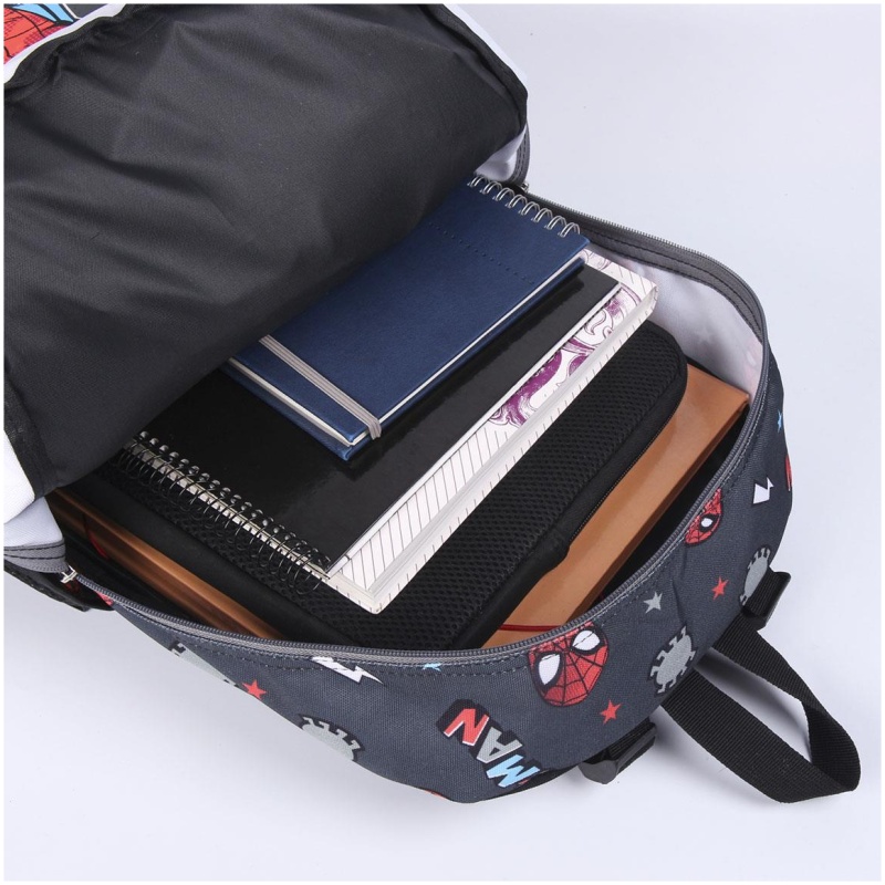 Kvalitetna školska torba. Odličan izbor za male Spiderman ljubitelje. Načinjena je od kvalitetnih materijala, sigurna za dijete i jednostavna za uporabu. Ruksak je iznimno lagan. Anatomski, ergonomski oblikovan leđni dio omogućava protok zraka. Anatomski oblikovane široke naramenice, remenčići za podešavanje, sigurnosni djelovi, džep na zip s prednje strane te pretinci na bočnim stranama. Prikladan dar za svako dijete.