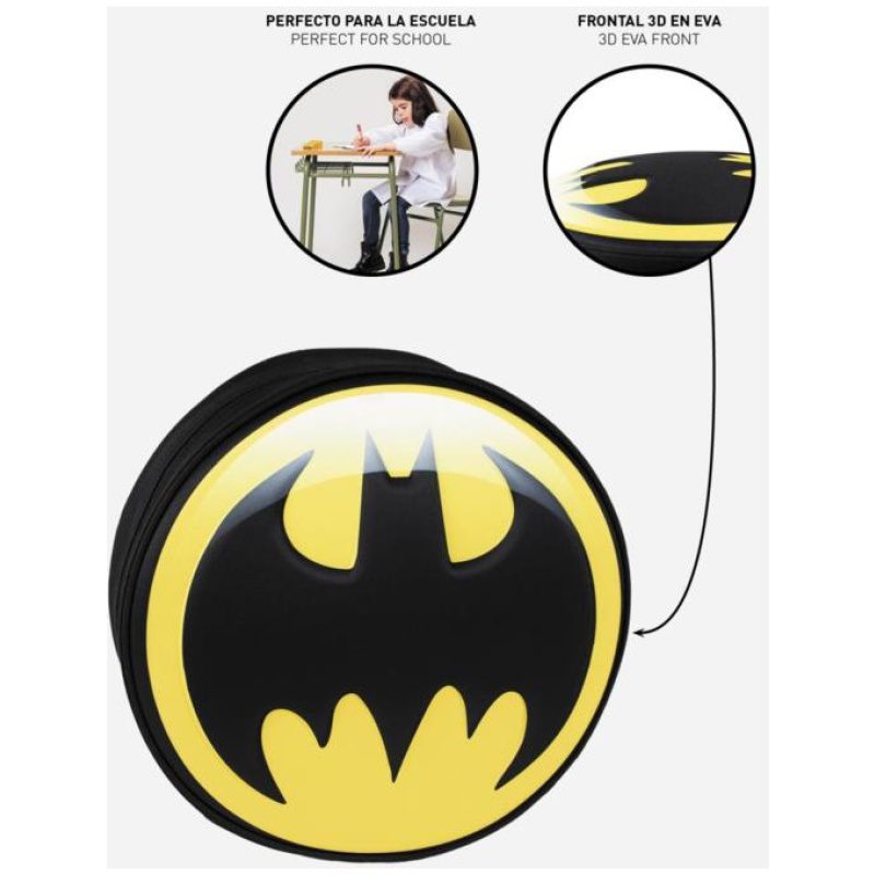 Kvalitetna torba za djecu. Zanimljivih boja i oblika sa poznatim likovima iz omiljenih crtića. Izrađena od kvalitetnih materijala sigurnih za djecu. 3D Batman okrugli ruksak. Dimenzije: 9 x 30 x 30 cm.